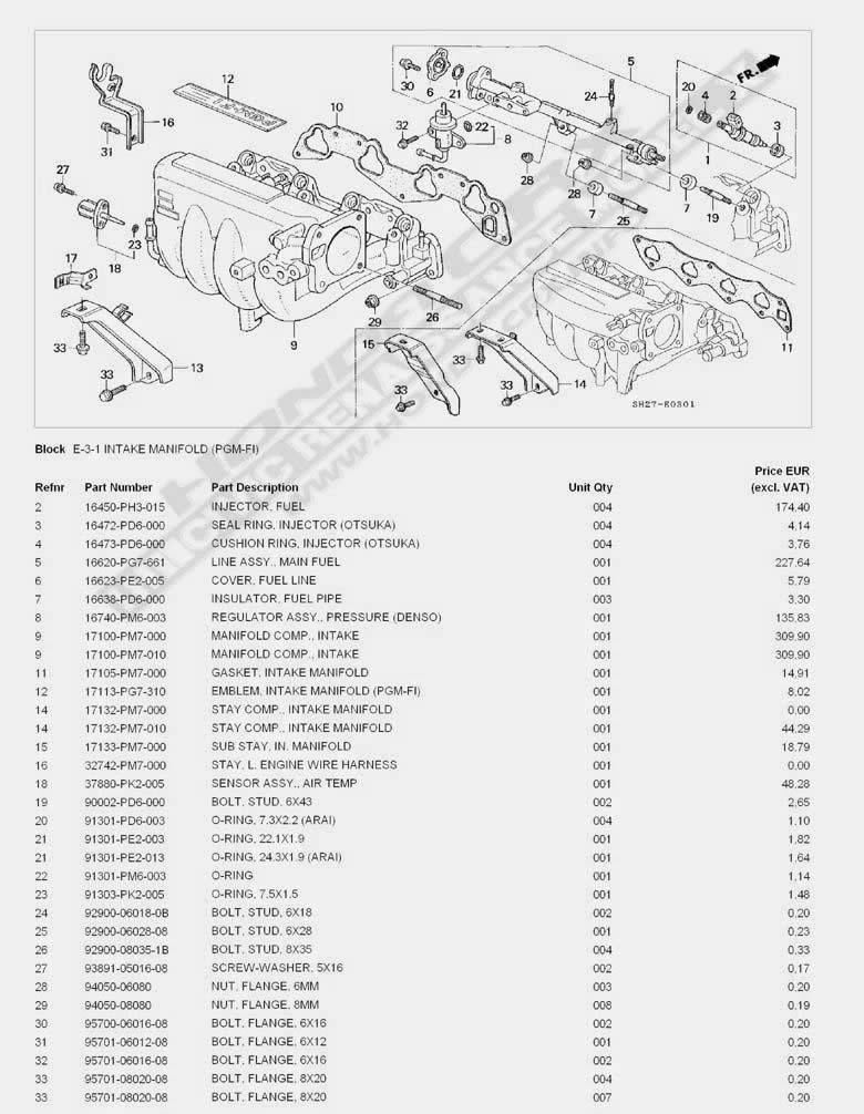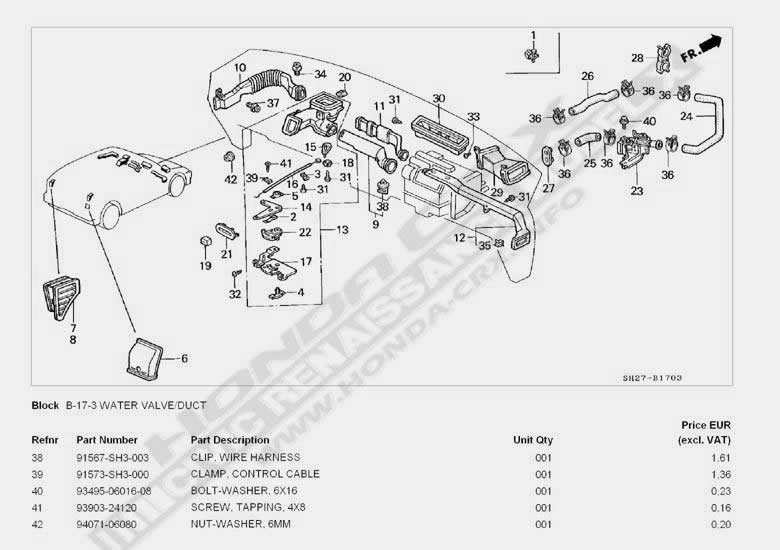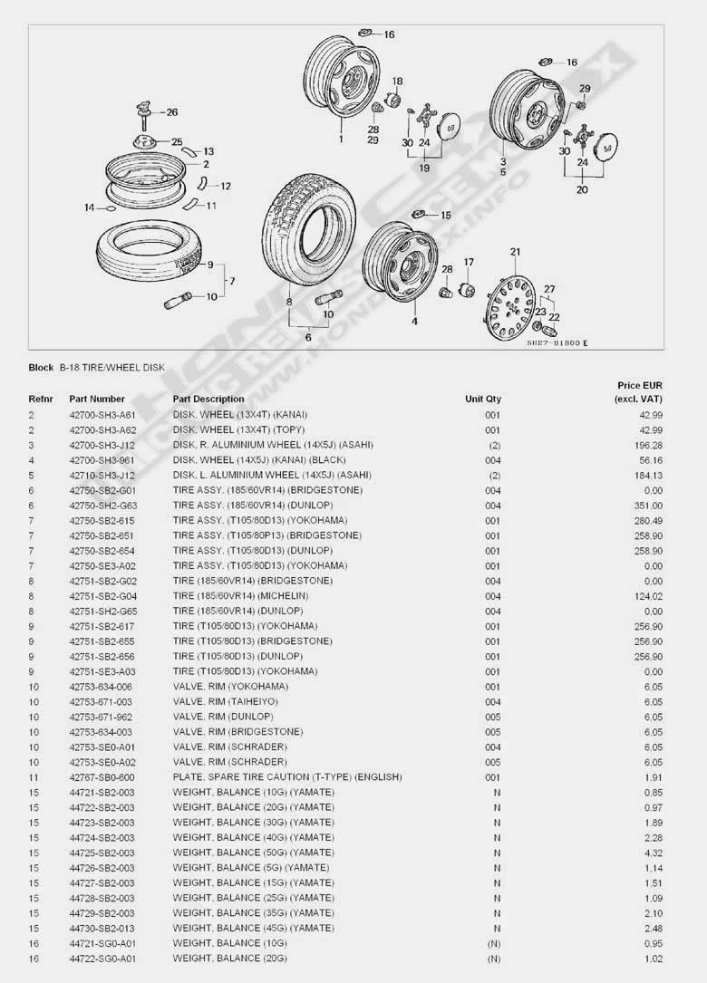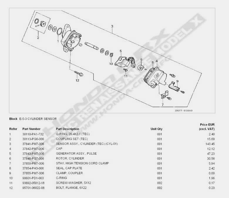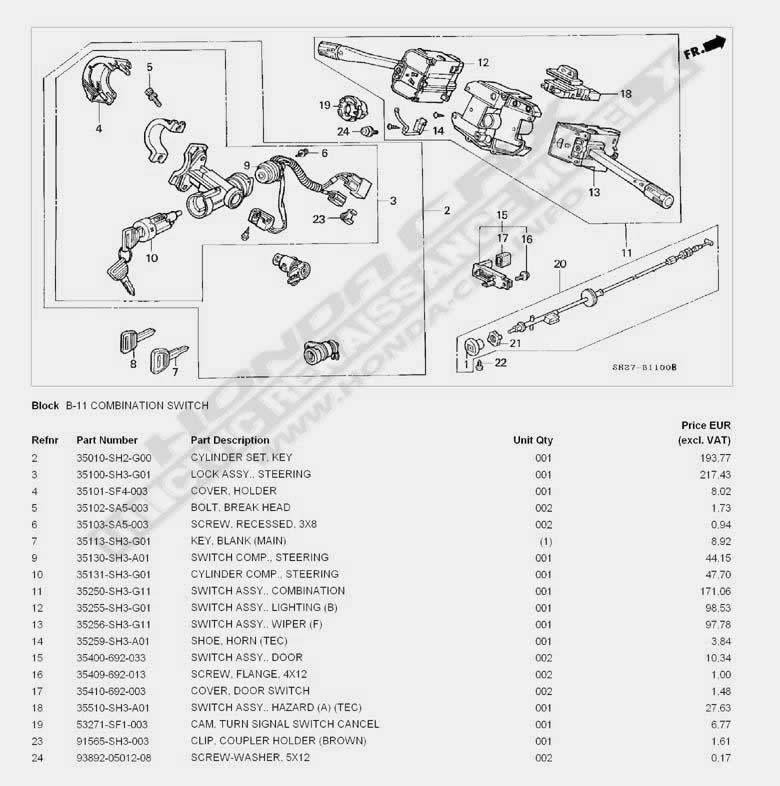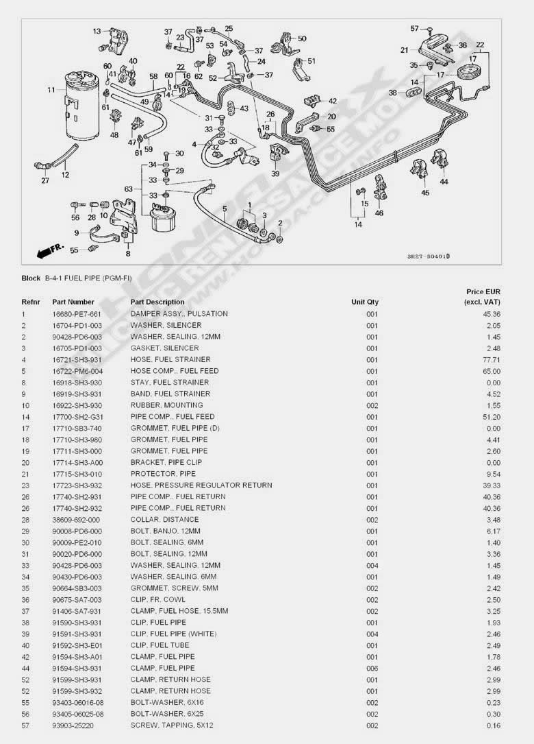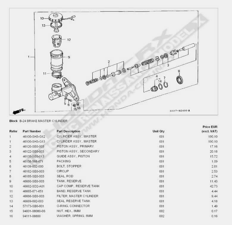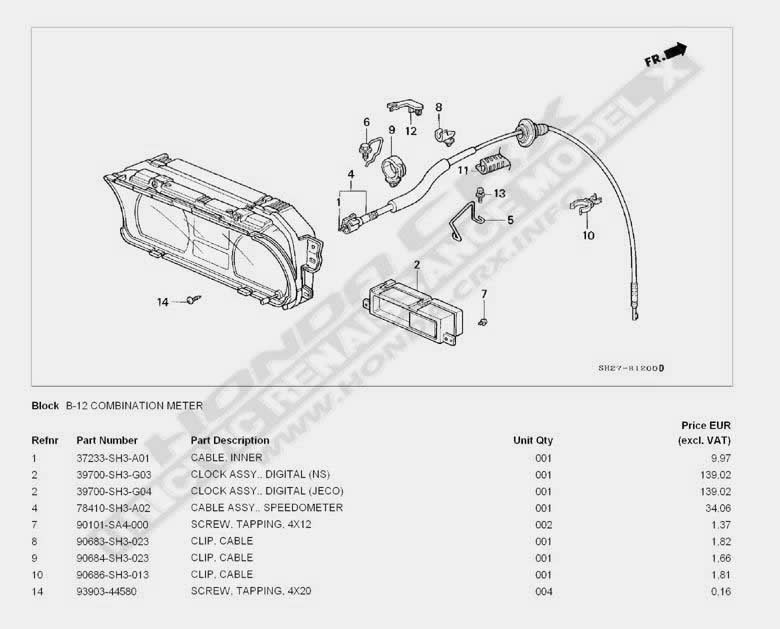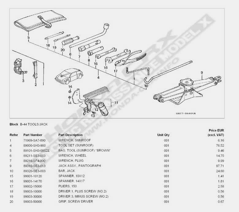 Ceny podane w schematach nie powinny się one specjalnie różnić w przyszłości od tych cen w serwisie Hondy - zwykle sa to wahania "o grosze". Ceny podane są w EURO bez podatku VAT (u nas jest to 22%, w niemczech 16%). Jeśli macie na obrazku nieco więcej części które Waszym zdaniem nie pasują do tego akurat modelu... to faktycznie może tak być :) Części które są potrzebne w danym modelu.. z danego schematu, sa wymienione niżej - razem z cenami. Często są schematy zbiorcze do wszystkich typów, tylko wybrane elementy z obrazka są właściwe.