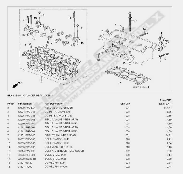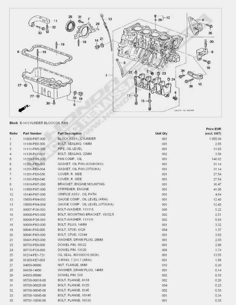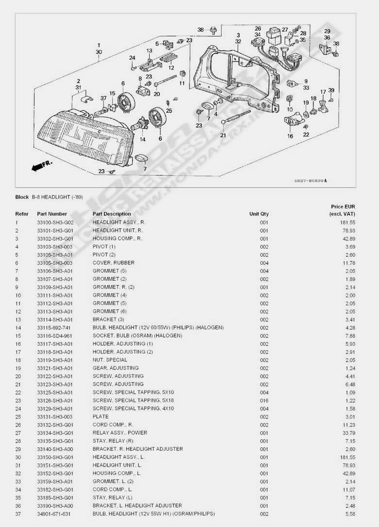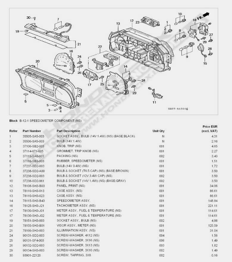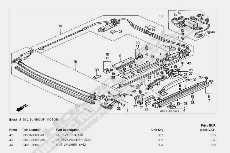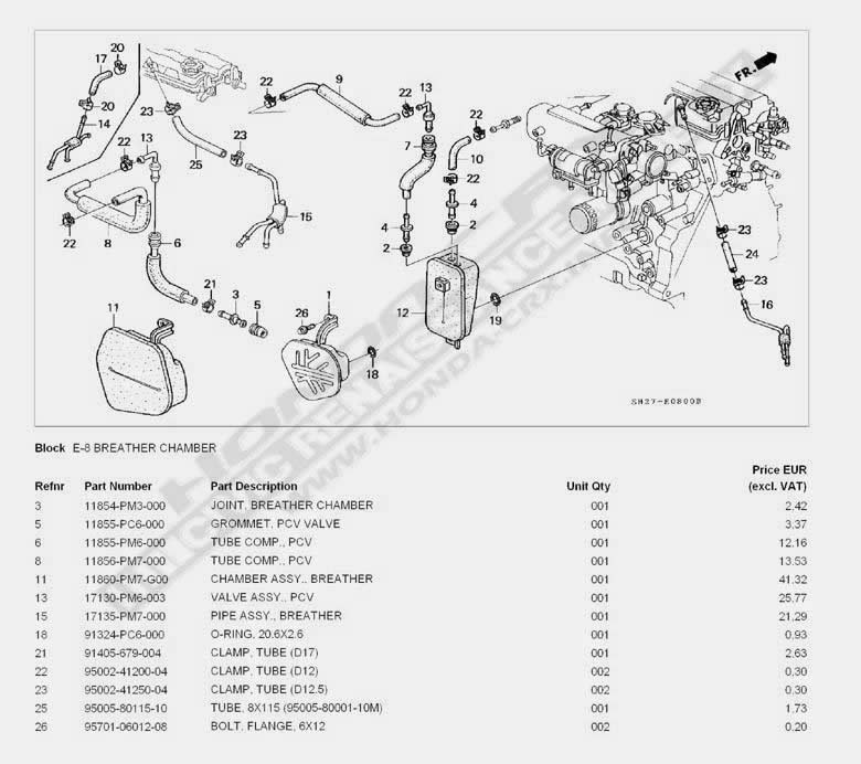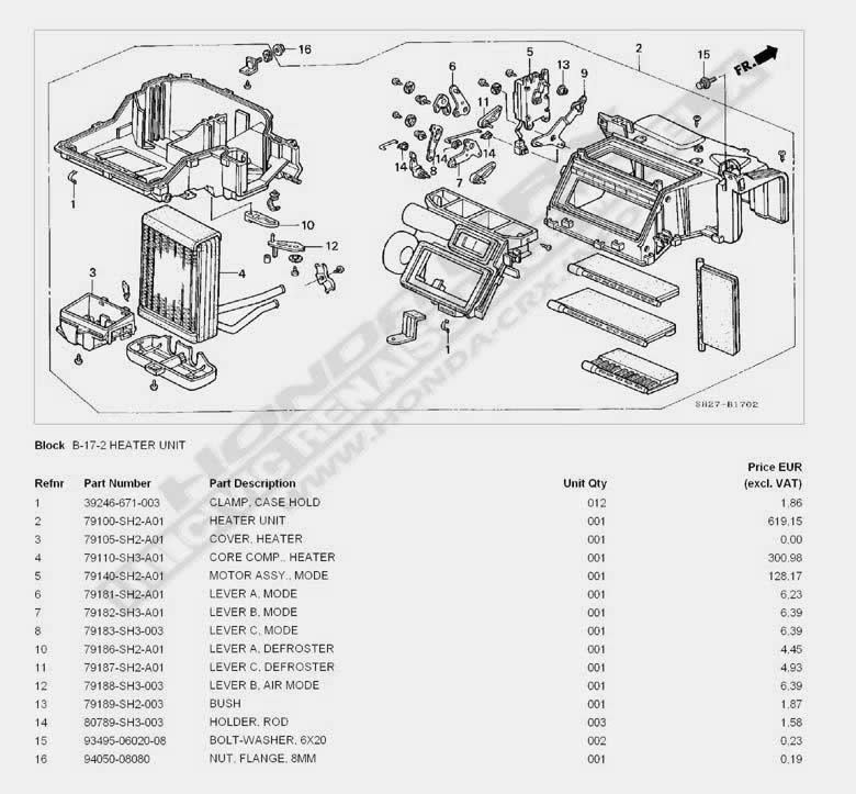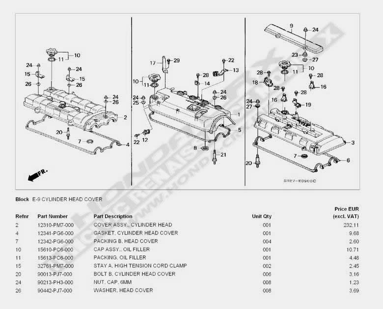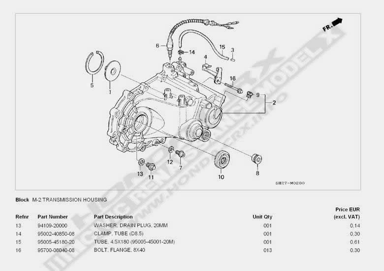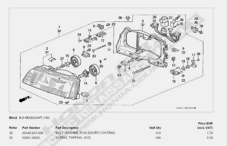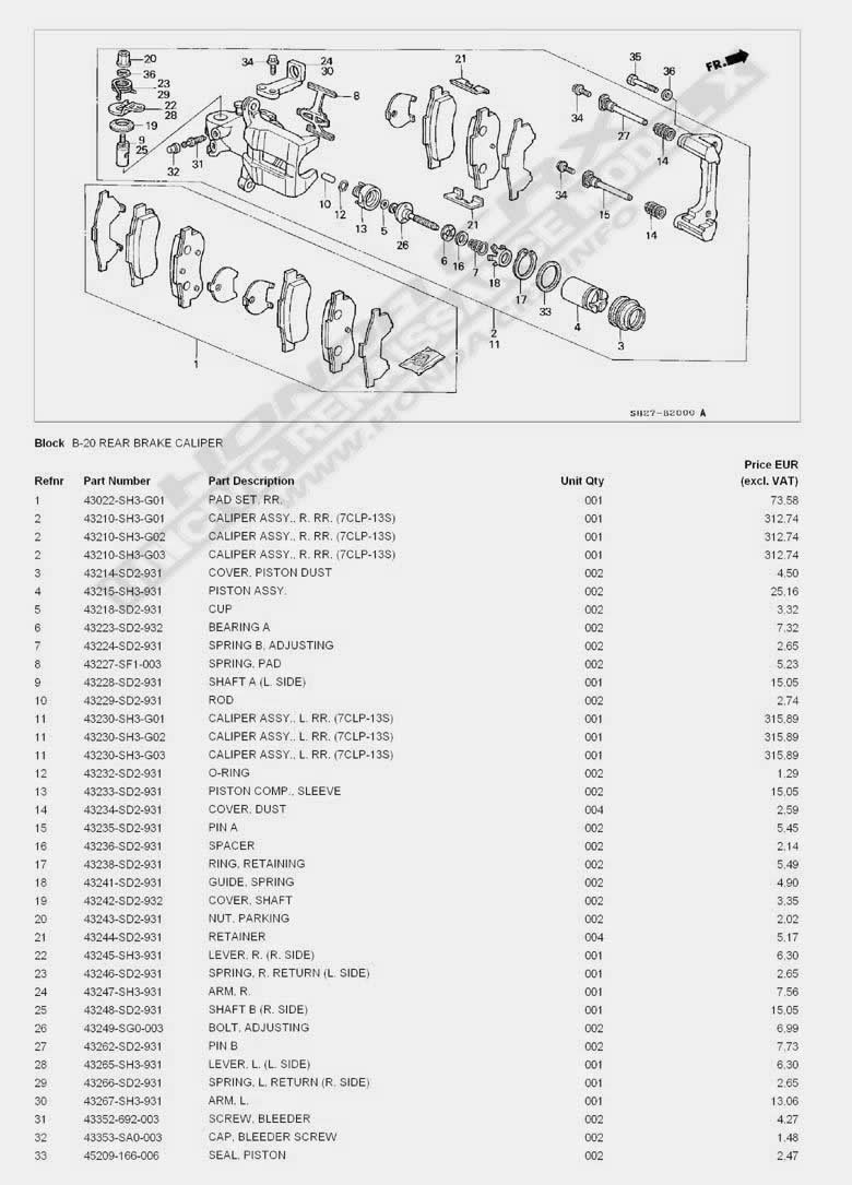 Ceny podane w schematach nie powinny się one specjalnie różnić w przyszłości od tych cen w serwisie Hondy - zwykle sa to wahania "o grosze". Ceny podane są w EURO bez podatku VAT (u nas jest to 22%, w niemczech 16%). Jeśli macie na obrazku nieco więcej części które Waszym zdaniem nie pasują do tego akurat modelu... to faktycznie może tak być :) Części które są potrzebne w danym modelu.. z danego schematu, sa wymienione niżej - razem z cenami. Często są schematy zbiorcze do wszystkich typów, tylko wybrane elementy z obrazka są właściwe.