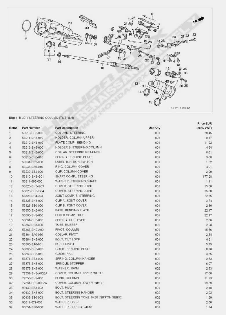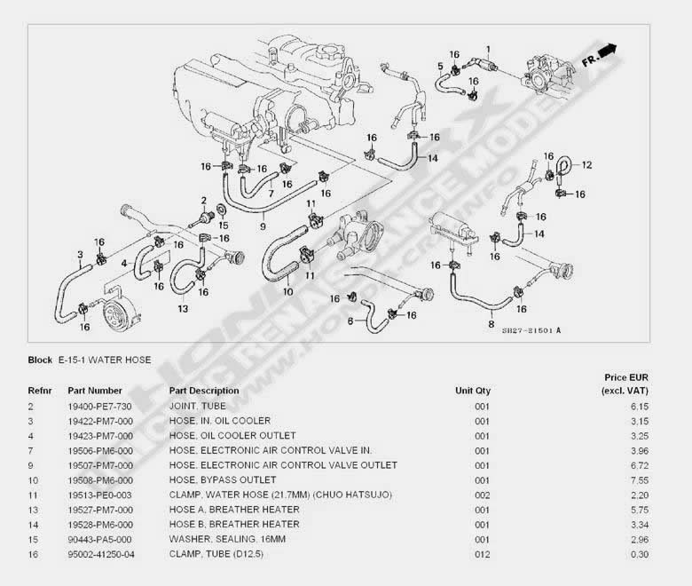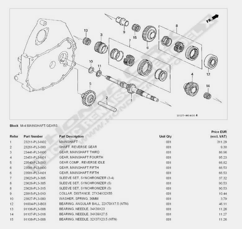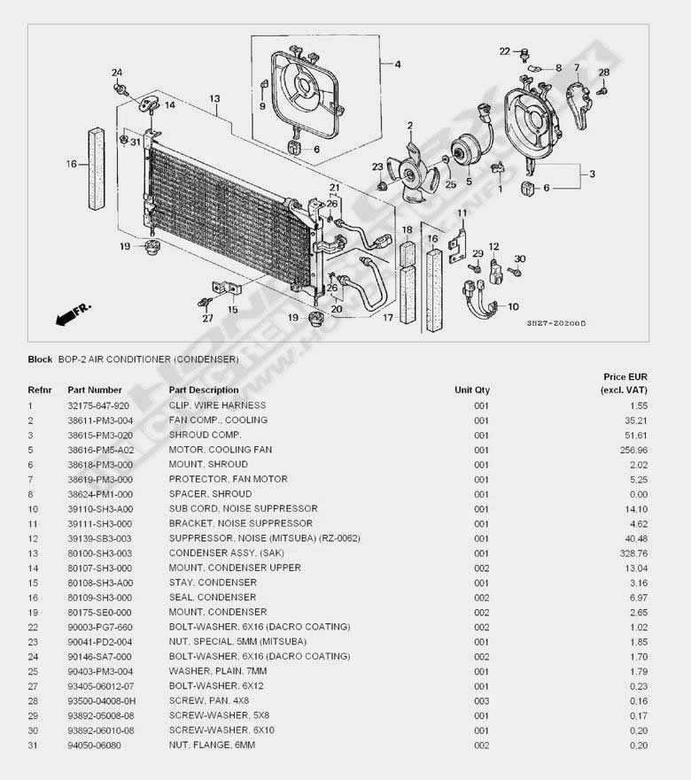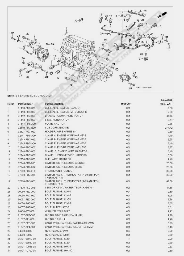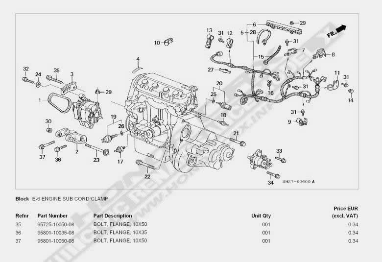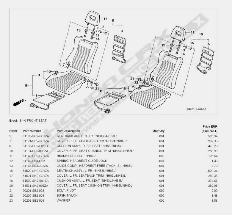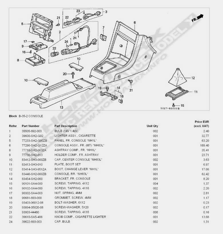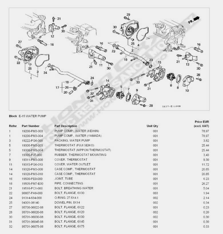 Ceny podane w schematach nie powinny się one specjalnie różnić w przyszłości od tych cen w serwisie Hondy - zwykle sa to wahania "o grosze". Ceny podane są w EURO bez podatku VAT (u nas jest to 22%, w niemczech 16%). Jeśli macie na obrazku nieco więcej części które Waszym zdaniem nie pasują do tego akurat modelu... to faktycznie może tak być :) Części które są potrzebne w danym modelu.. z danego schematu, sa wymienione niżej - razem z cenami. Często są schematy zbiorcze do wszystkich typów, tylko wybrane elementy z obrazka są właściwe.