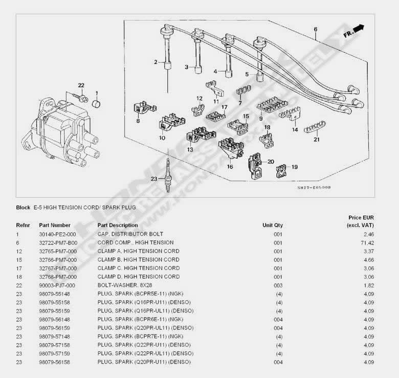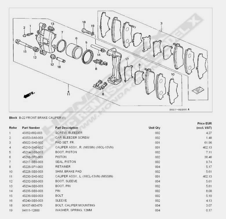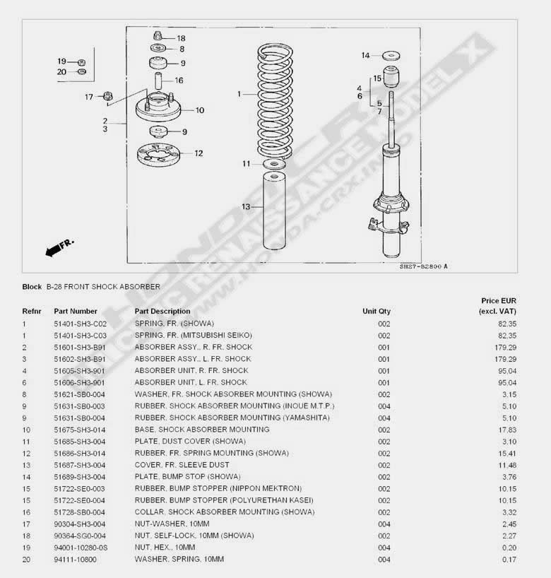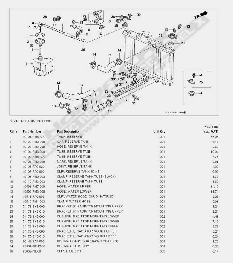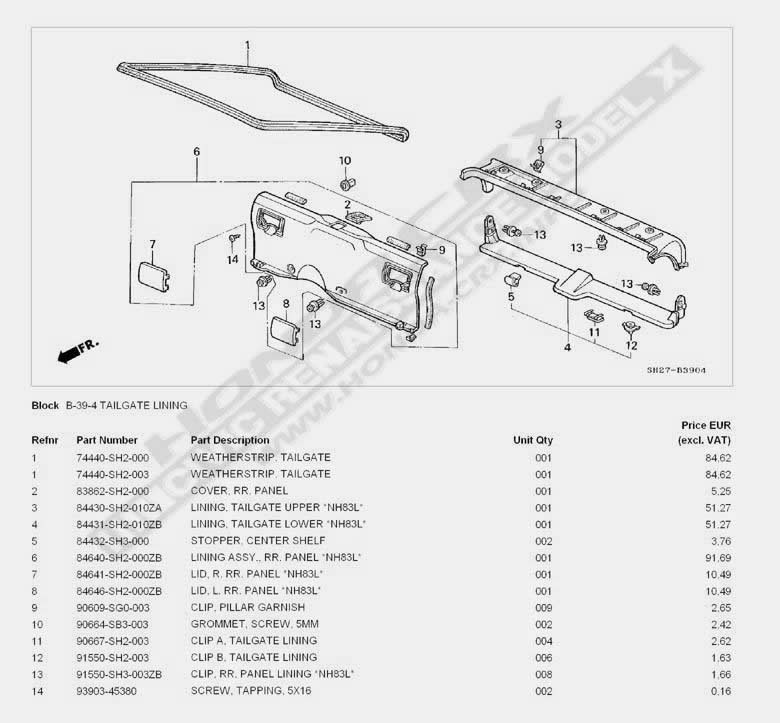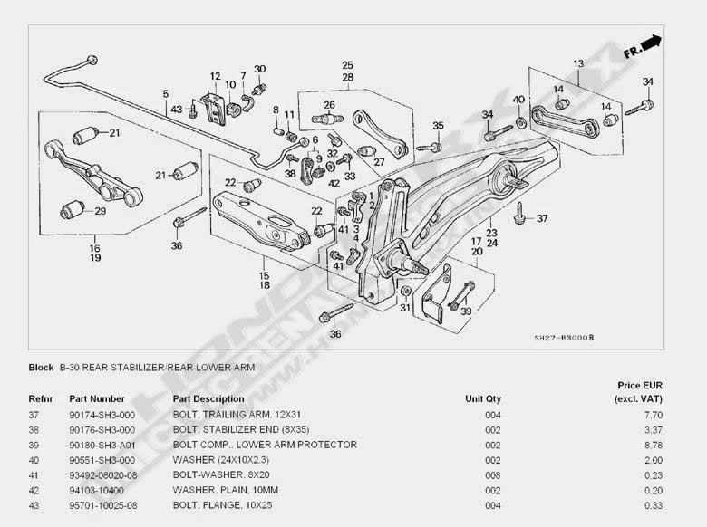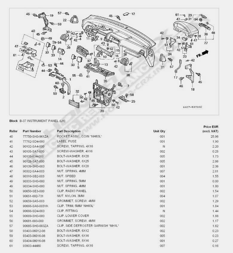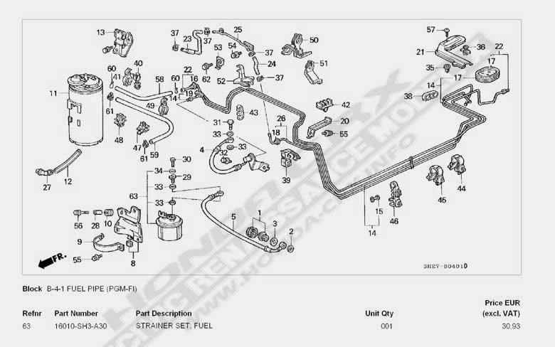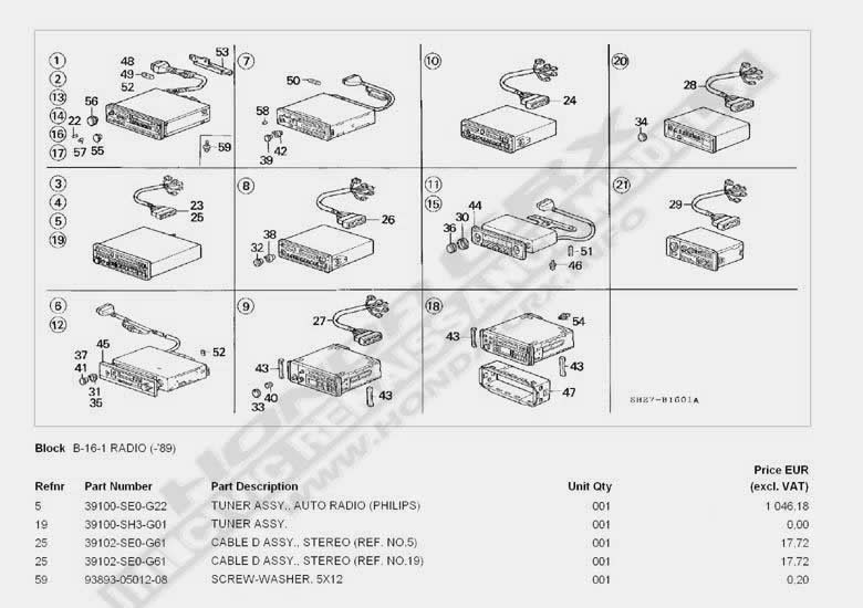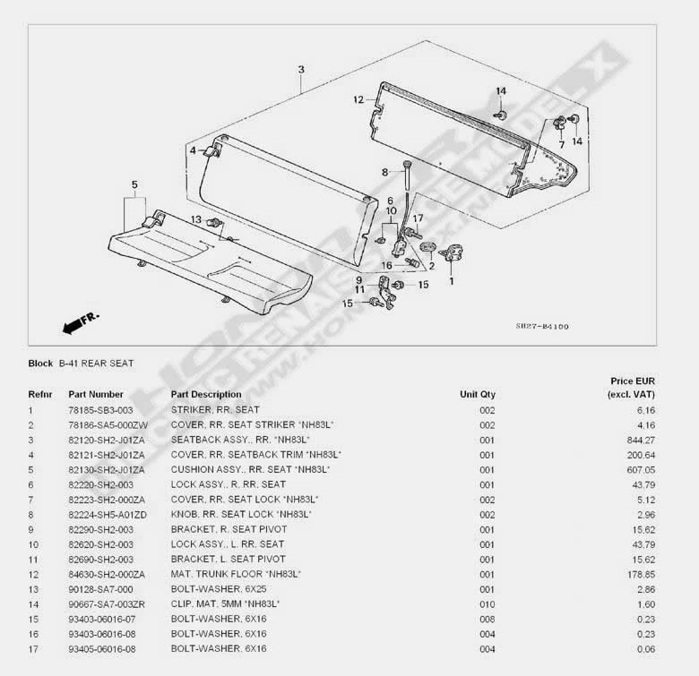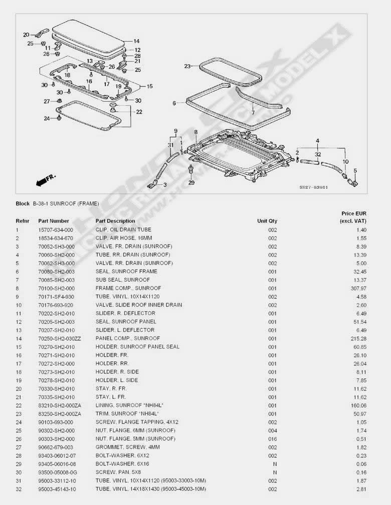 Ceny podane w schematach nie powinny się one specjalnie różnić w przyszłości od tych cen w serwisie Hondy - zwykle sa to wahania "o grosze". Ceny podane są w EURO bez podatku VAT (u nas jest to 22%, w niemczech 16%). Jeśli macie na obrazku nieco więcej części które Waszym zdaniem nie pasują do tego akurat modelu... to faktycznie może tak być :) Części które są potrzebne w danym modelu.. z danego schematu, sa wymienione niżej - razem z cenami. Często są schematy zbiorcze do wszystkich typów, tylko wybrane elementy z obrazka są właściwe.