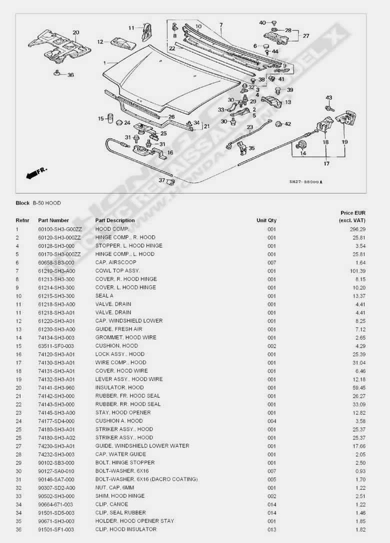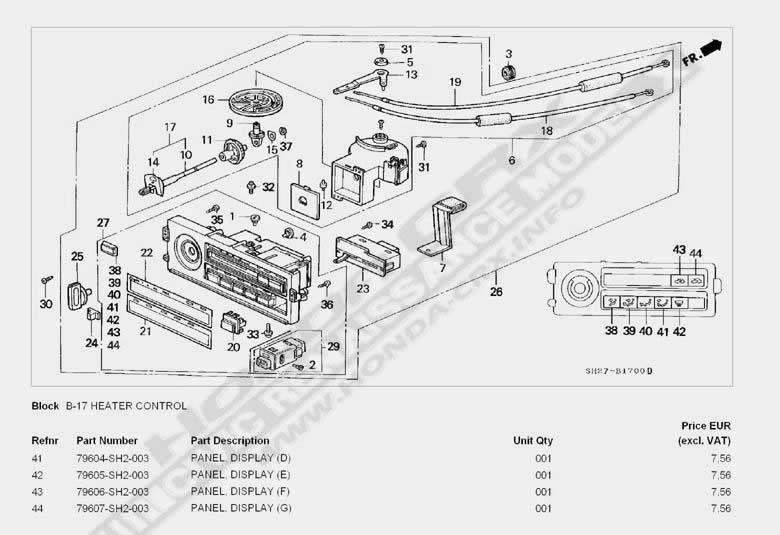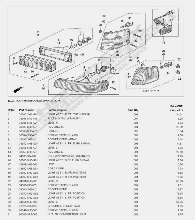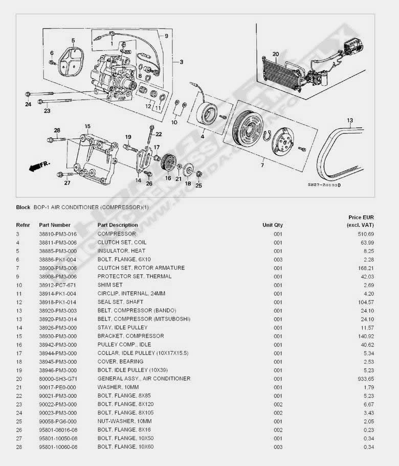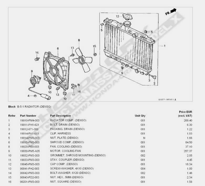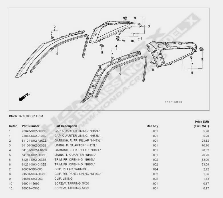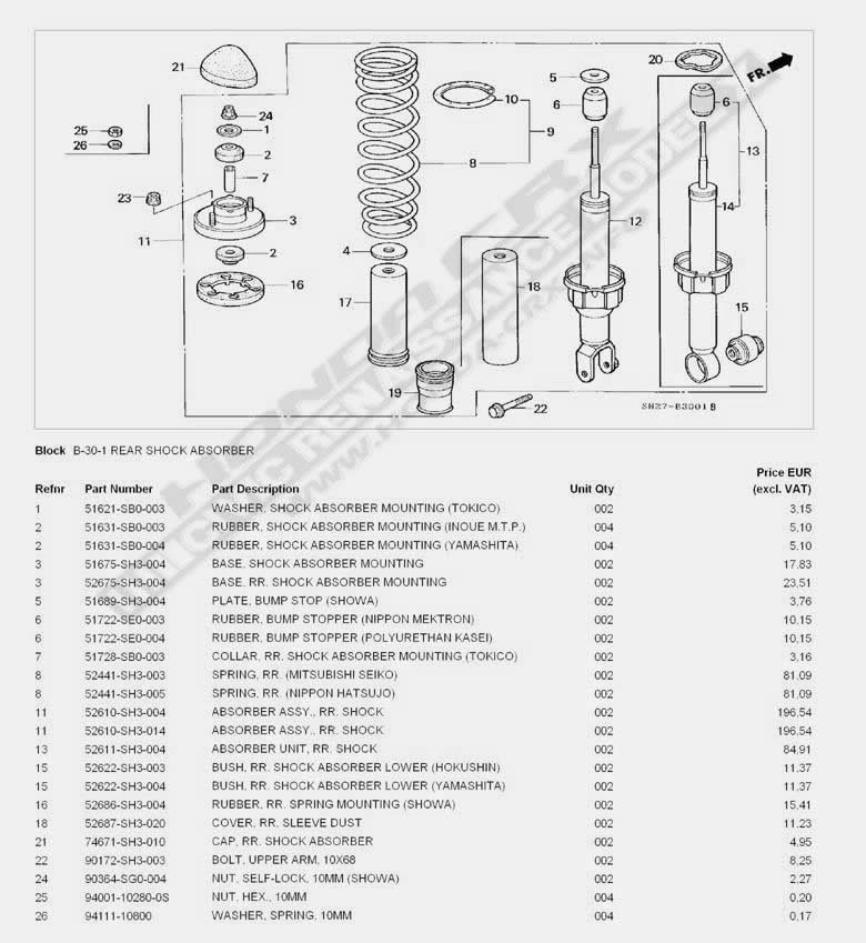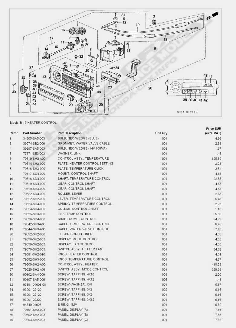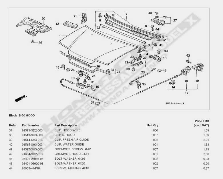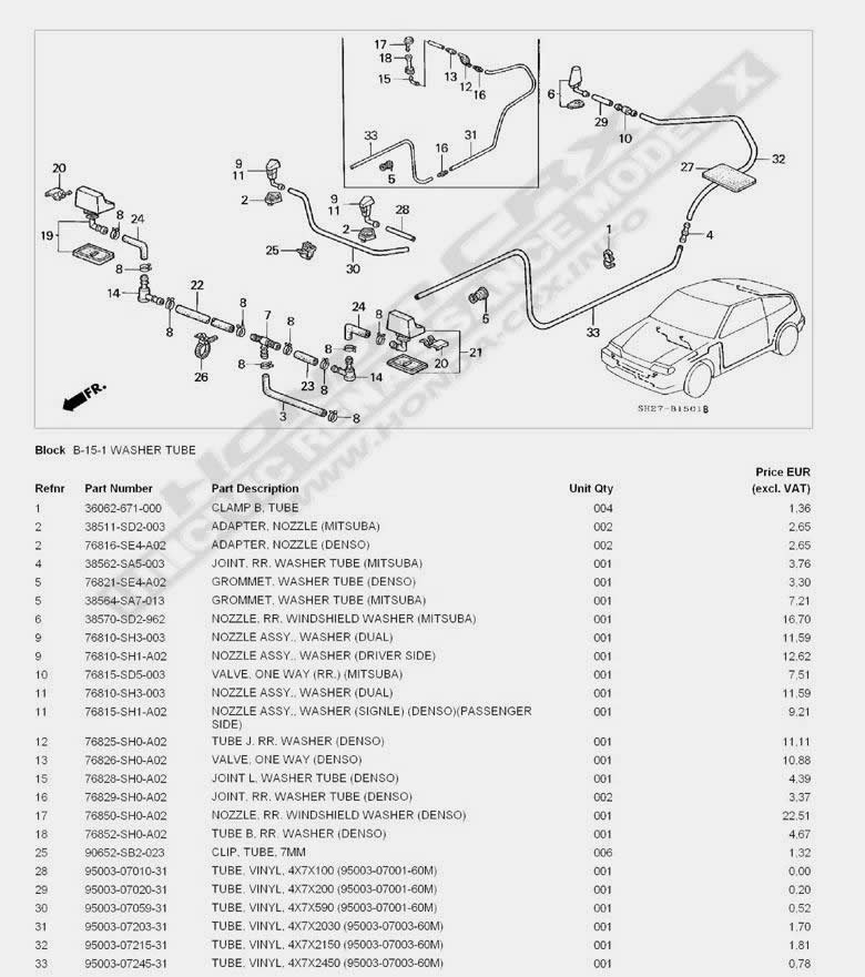 Ceny podane w schematach nie powinny się one specjalnie różnić w przyszłości od tych cen w serwisie Hondy - zwykle sa to wahania "o grosze". Ceny podane są w EURO bez podatku VAT (u nas jest to 22%, w niemczech 16%). Jeśli macie na obrazku nieco więcej części które Waszym zdaniem nie pasują do tego akurat modelu... to faktycznie może tak być :) Części które są potrzebne w danym modelu.. z danego schematu, sa wymienione niżej - razem z cenami. Często są schematy zbiorcze do wszystkich typów, tylko wybrane elementy z obrazka są właściwe.