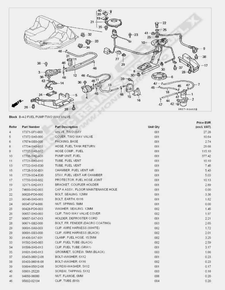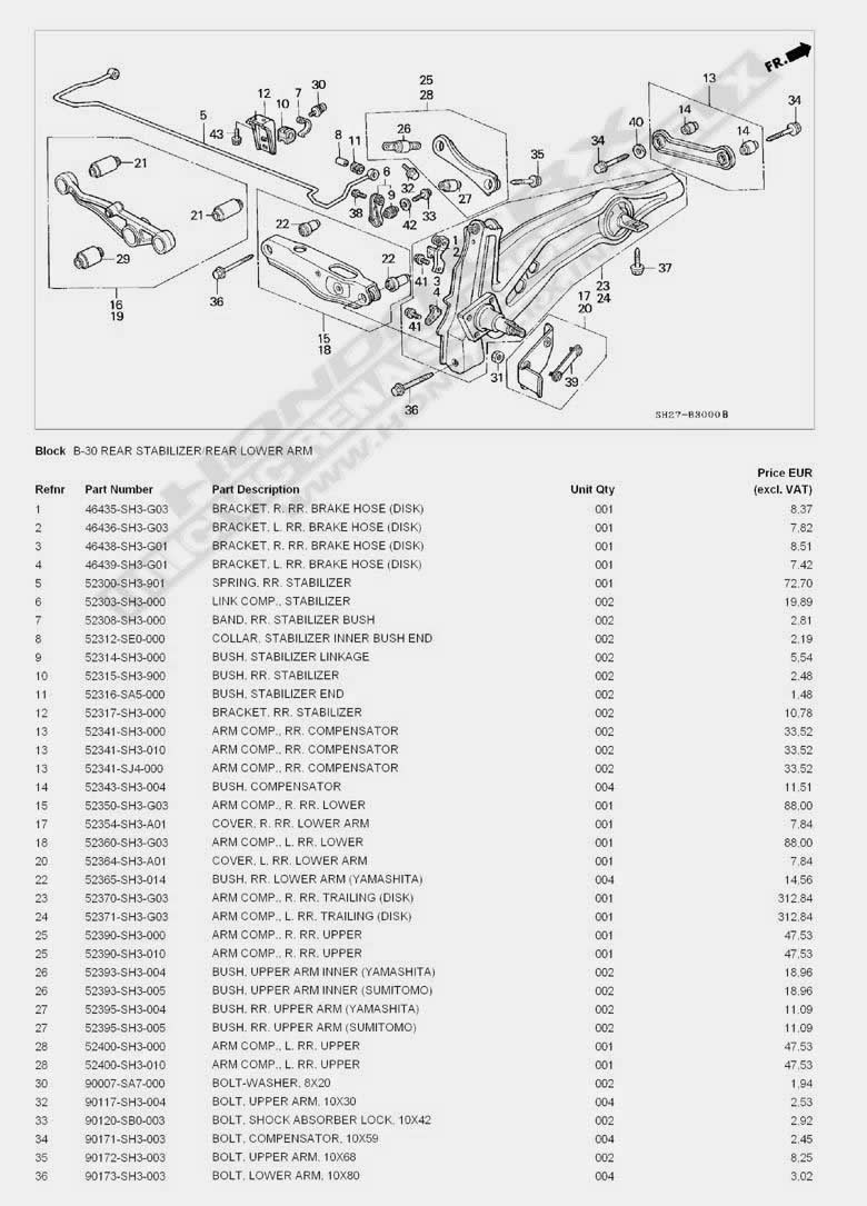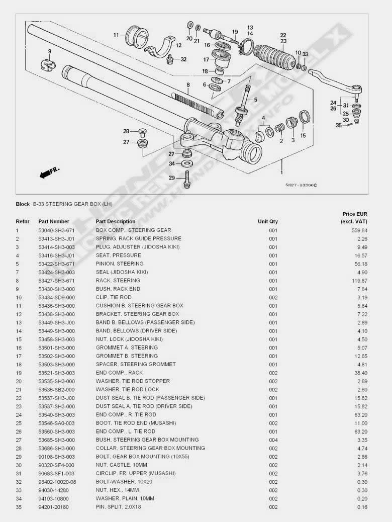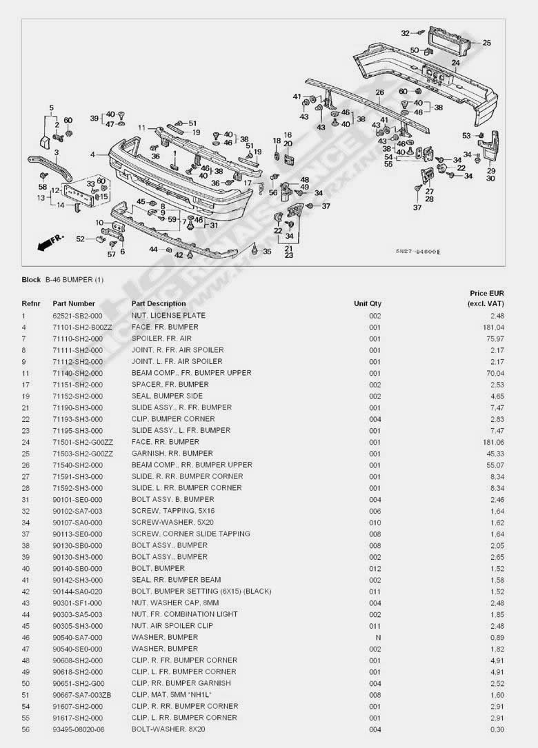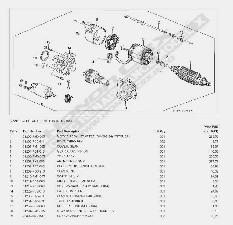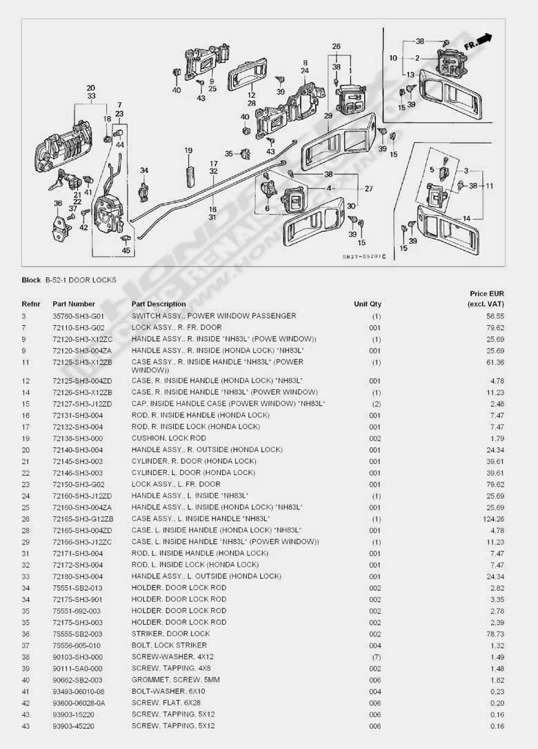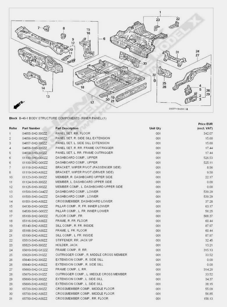 Ceny podane w schematach nie powinny się one specjalnie różnić w przyszłości od tych cen w serwisie Hondy - zwykle sa to wahania "o grosze". Ceny podane są w EURO bez podatku VAT (u nas jest to 22%, w niemczech 16%). Jeśli macie na obrazku nieco więcej części które Waszym zdaniem nie pasują do tego akurat modelu... to faktycznie może tak być :) Części które są potrzebne w danym modelu.. z danego schematu, sa wymienione niżej - razem z cenami. Często są schematy zbiorcze do wszystkich typów, tylko wybrane elementy z obrazka są właściwe.