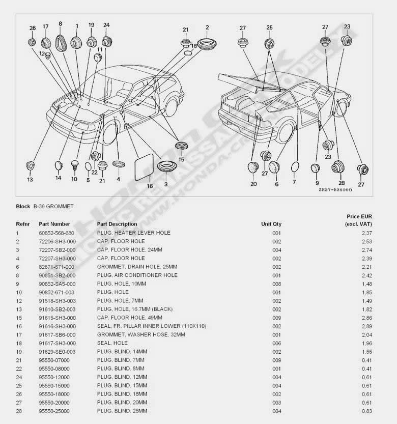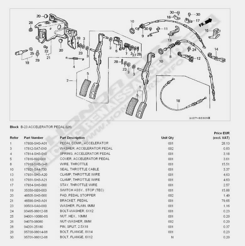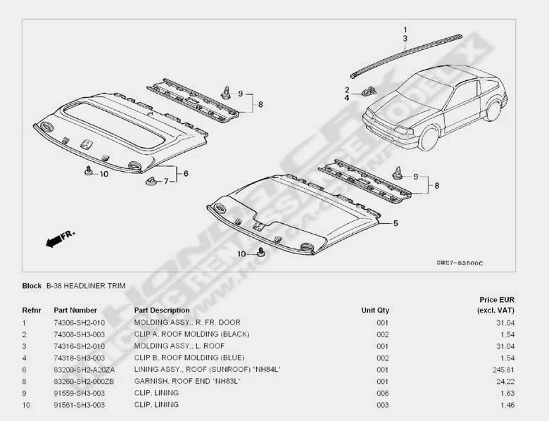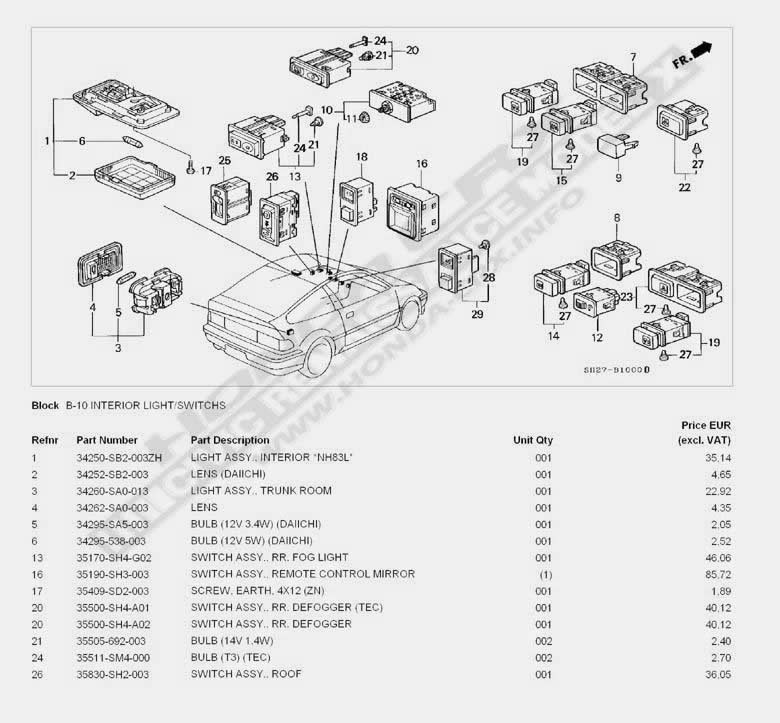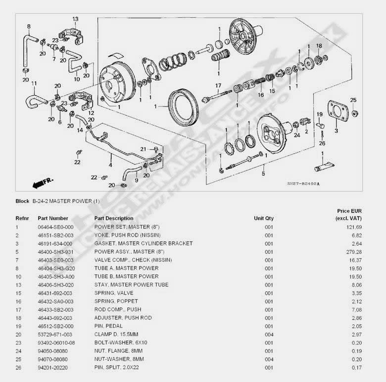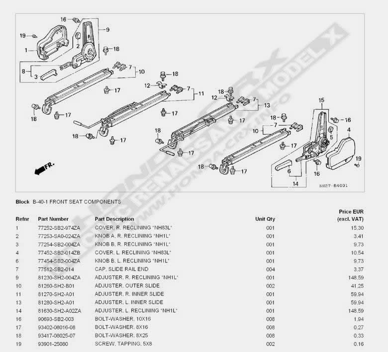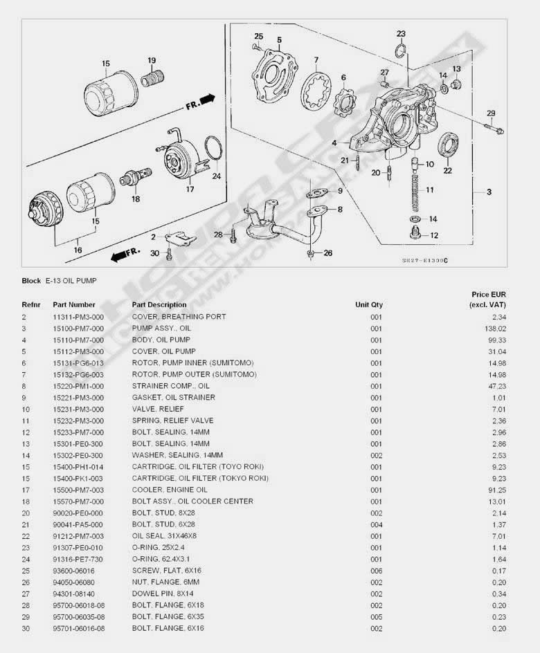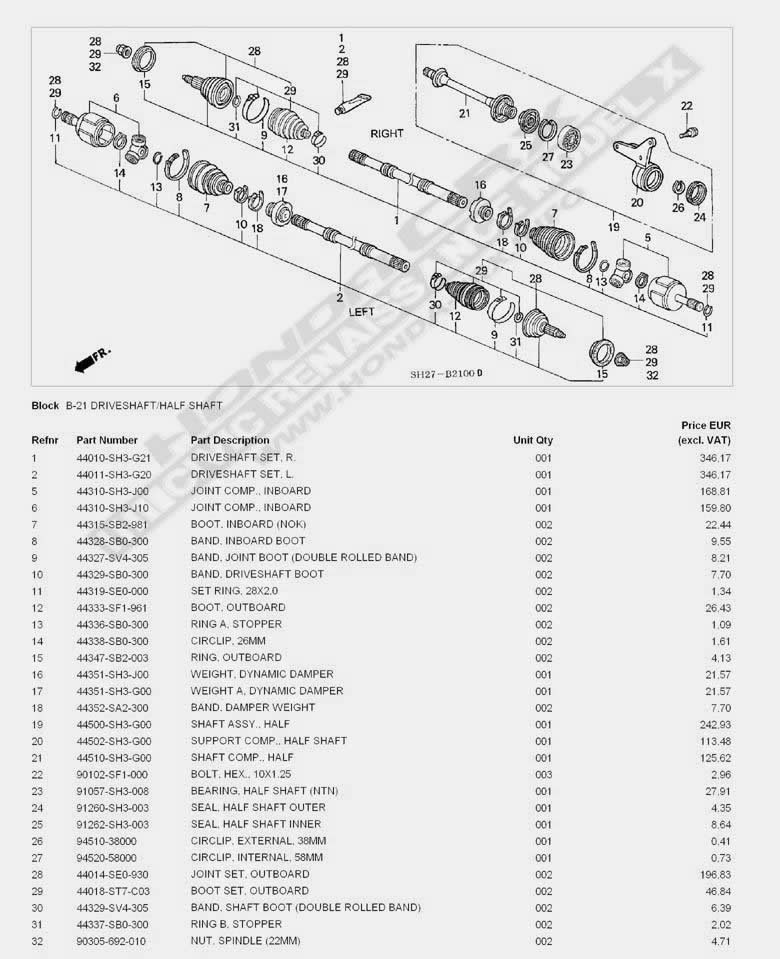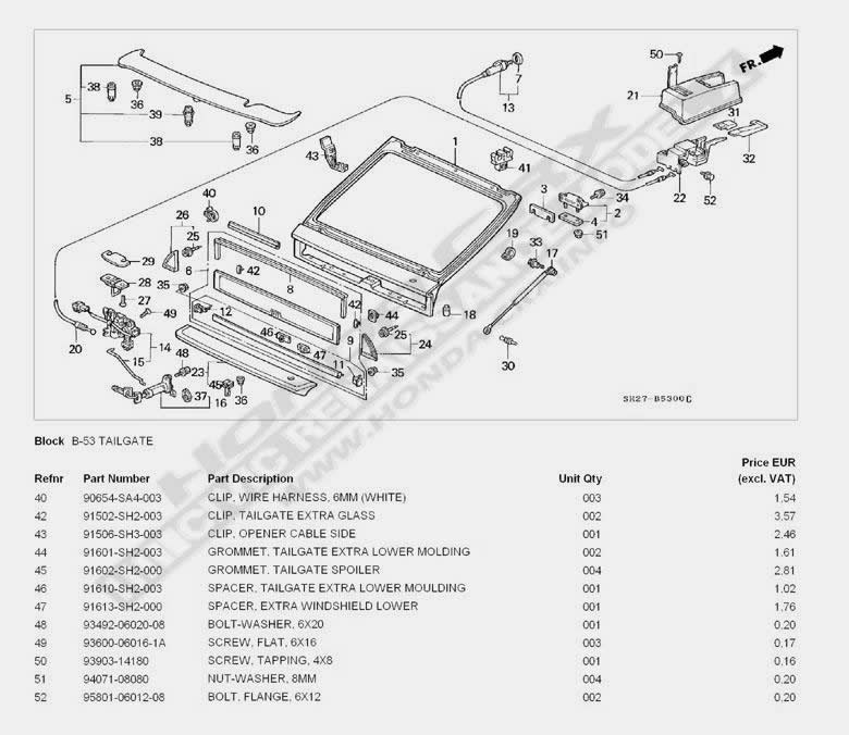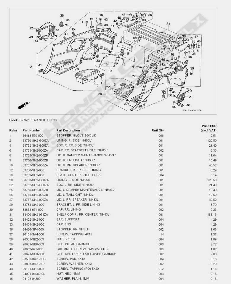 Ceny podane w schematach nie powinny się one specjalnie różnić w przyszłości od tych cen w serwisie Hondy - zwykle sa to wahania "o grosze". Ceny podane są w EURO bez podatku VAT (u nas jest to 22%, w niemczech 16%). Jeśli macie na obrazku nieco więcej części które Waszym zdaniem nie pasują do tego akurat modelu... to faktycznie może tak być :) Części które są potrzebne w danym modelu.. z danego schematu, sa wymienione niżej - razem z cenami. Często są schematy zbiorcze do wszystkich typów, tylko wybrane elementy z obrazka są właściwe.