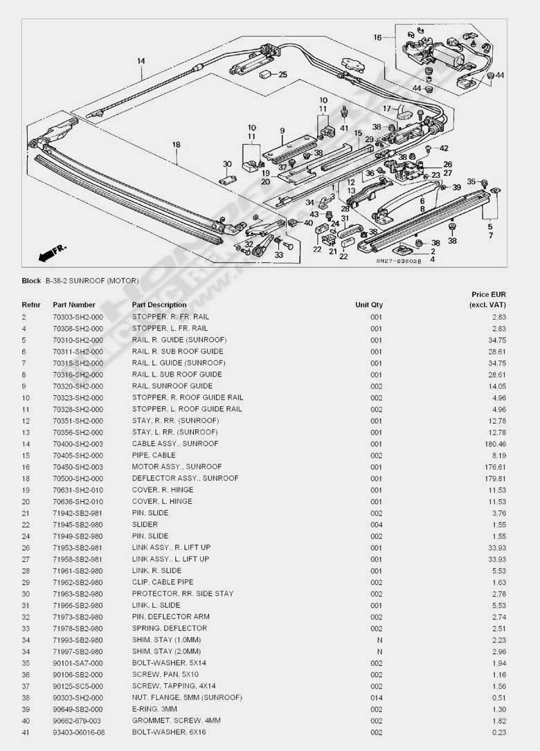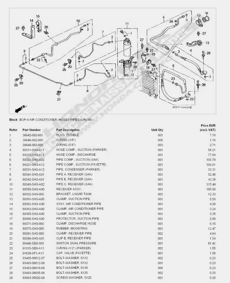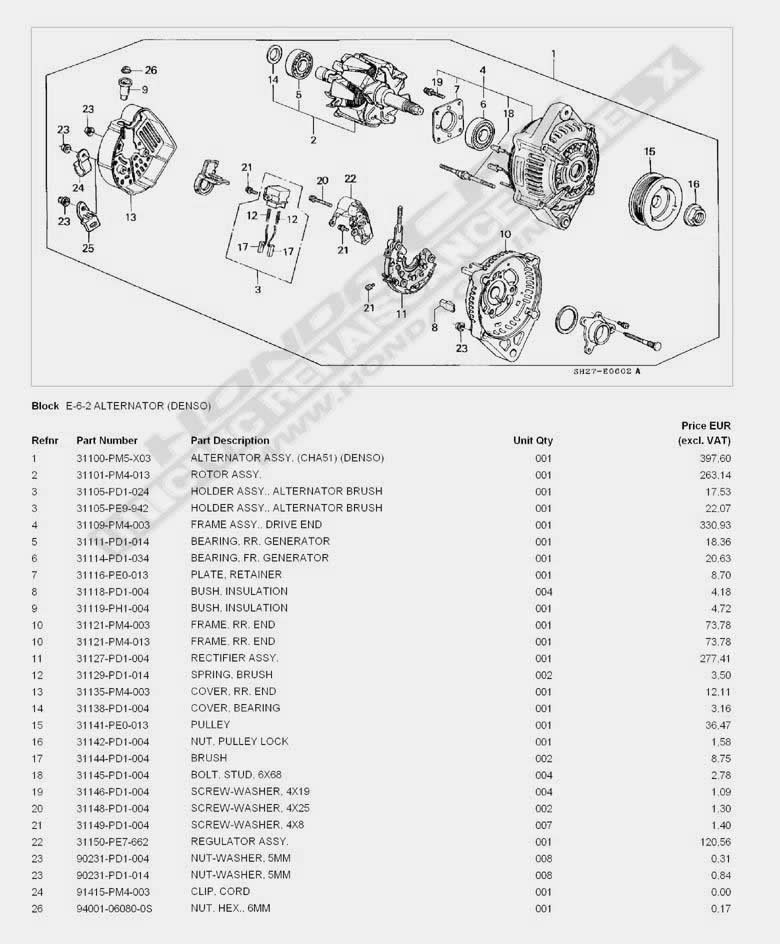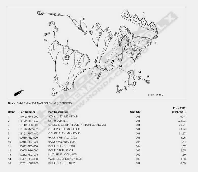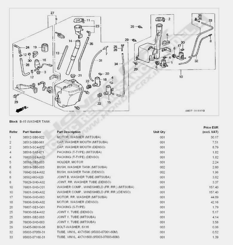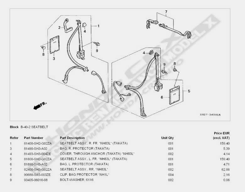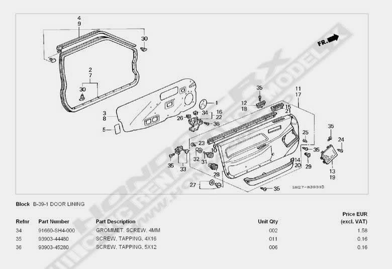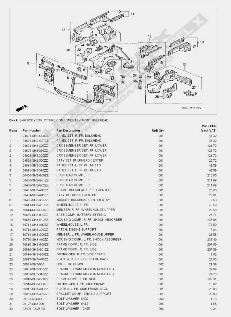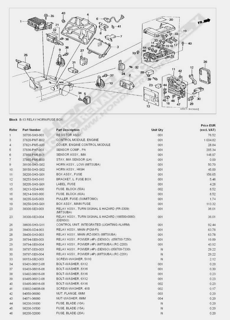 Ceny podane w schematach nie powinny się one specjalnie różnić w przyszłości od tych cen w serwisie Hondy - zwykle sa to wahania "o grosze". Ceny podane są w EURO bez podatku VAT (u nas jest to 22%, w niemczech 16%). Jeśli macie na obrazku nieco więcej części które Waszym zdaniem nie pasują do tego akurat modelu... to faktycznie może tak być :) Części które są potrzebne w danym modelu.. z danego schematu, sa wymienione niżej - razem z cenami. Często są schematy zbiorcze do wszystkich typów, tylko wybrane elementy z obrazka są właściwe.