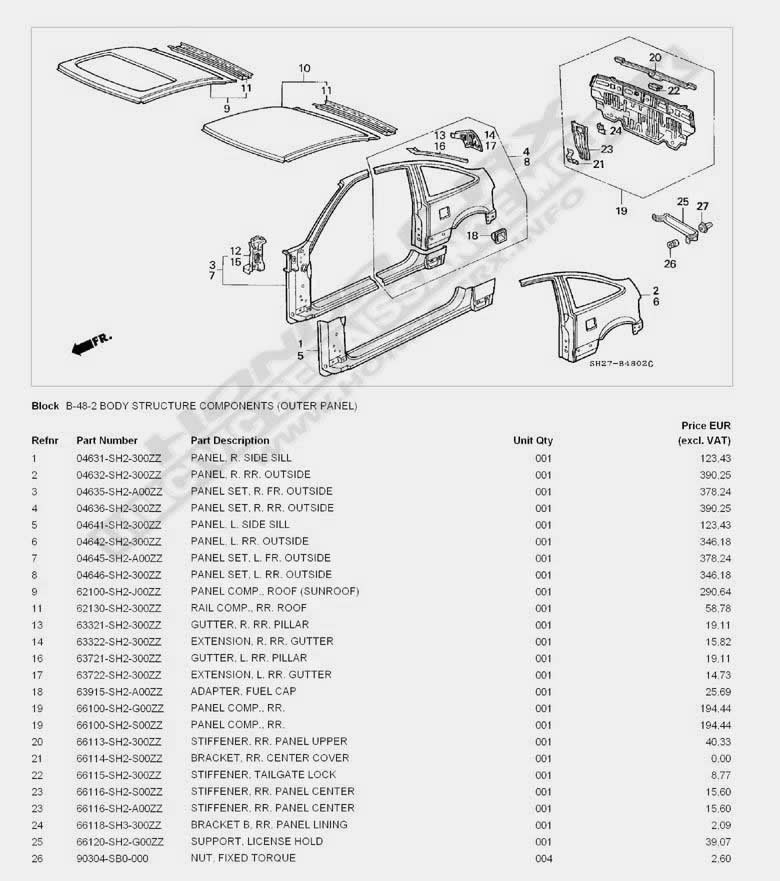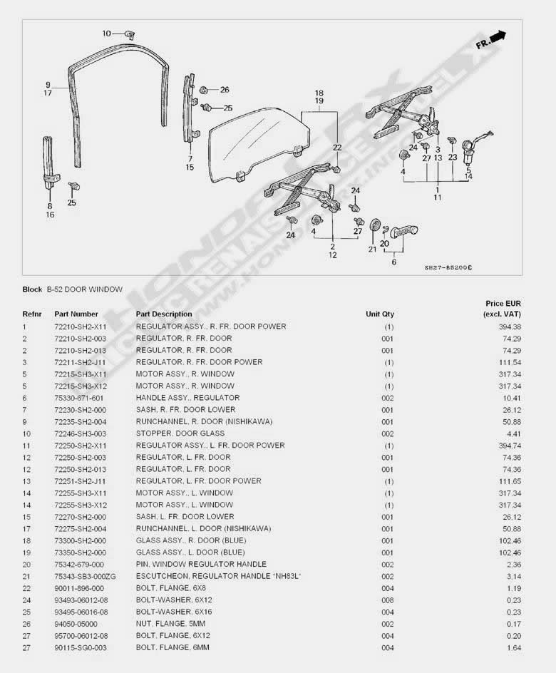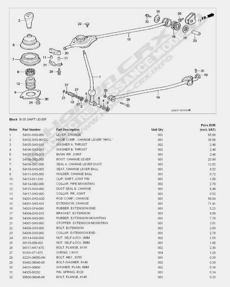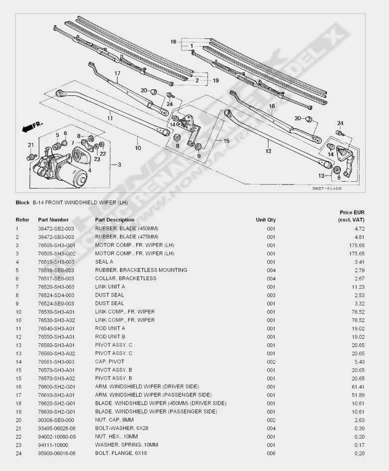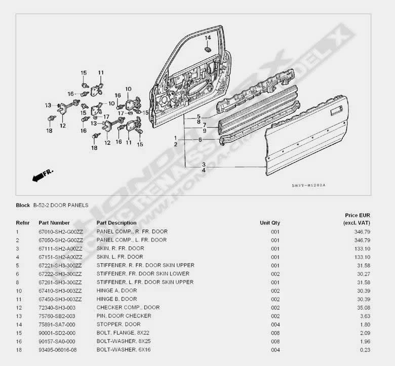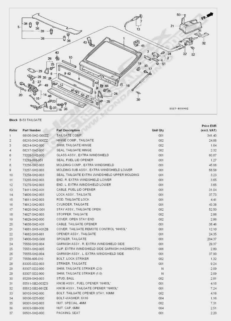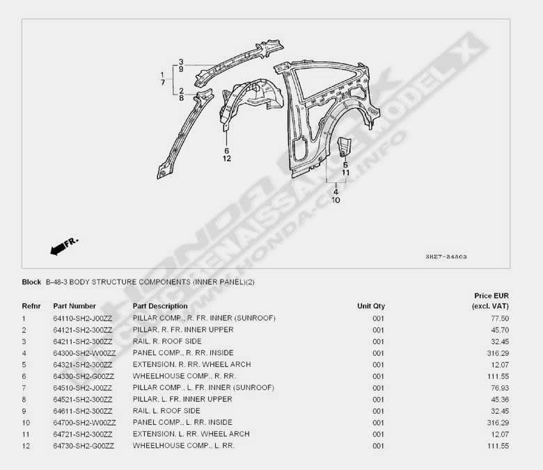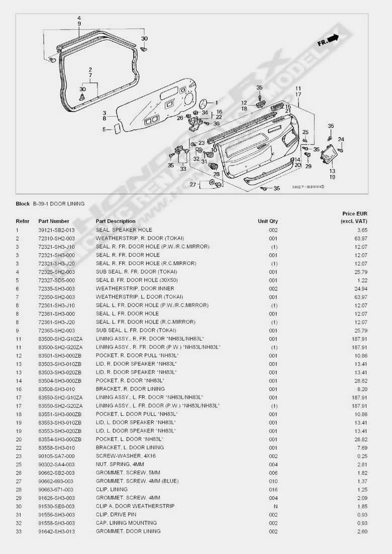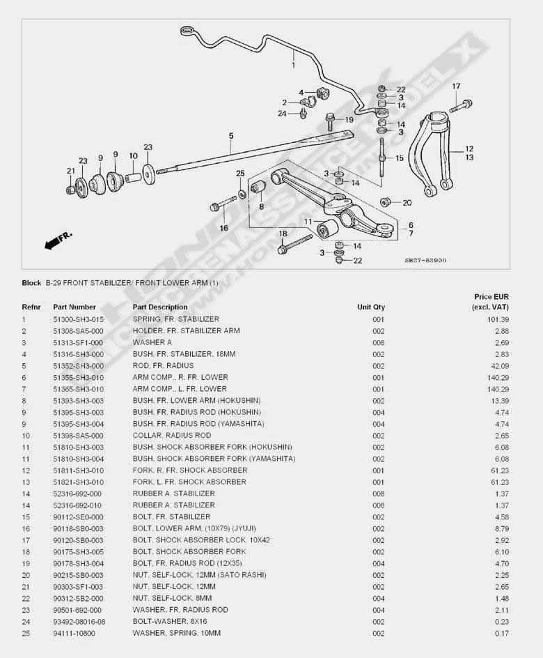 Ceny podane w schematach nie powinny się one specjalnie różnić w przyszłości od tych cen w serwisie Hondy - zwykle sa to wahania "o grosze". Ceny podane są w EURO bez podatku VAT (u nas jest to 22%, w niemczech 16%). Jeśli macie na obrazku nieco więcej części które Waszym zdaniem nie pasują do tego akurat modelu... to faktycznie może tak być :) Części które są potrzebne w danym modelu.. z danego schematu, sa wymienione niżej - razem z cenami. Często są schematy zbiorcze do wszystkich typów, tylko wybrane elementy z obrazka są właściwe.