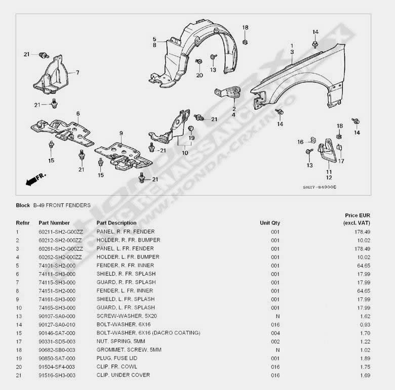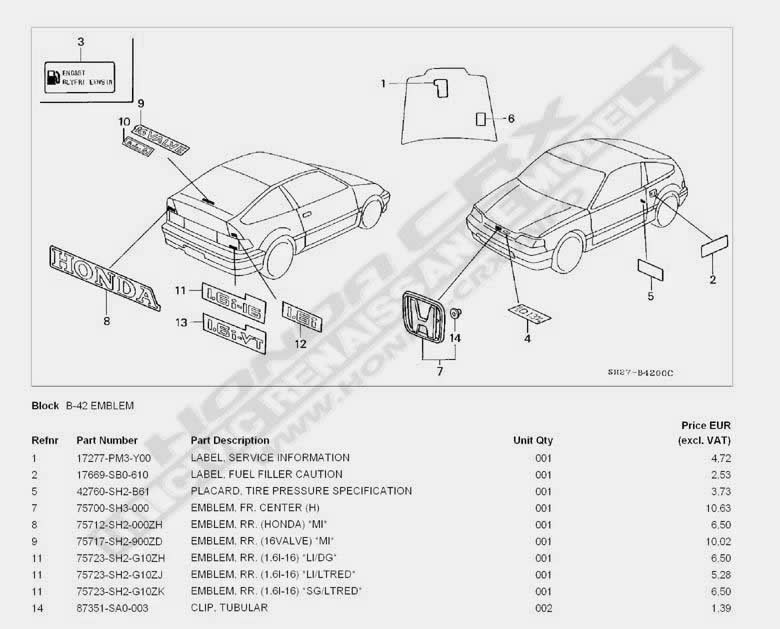 CRX 2nd gen - Schematy i ceny części dla modelu ED9 88-90