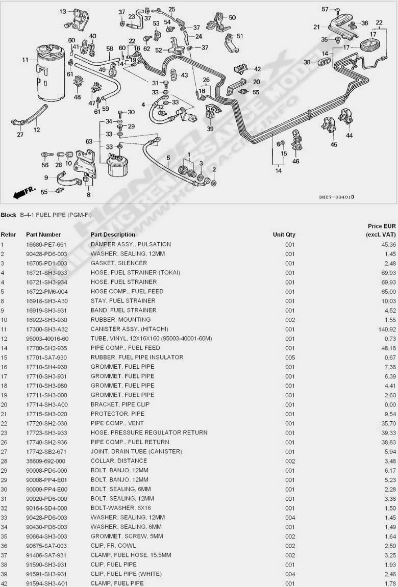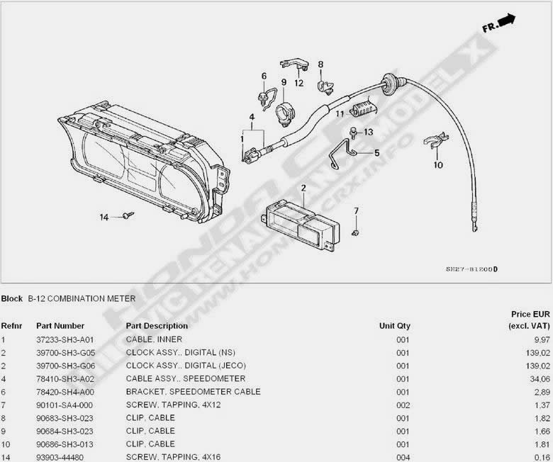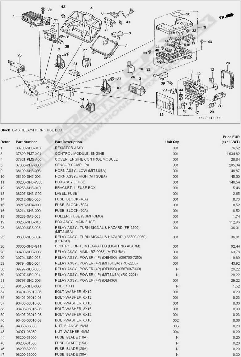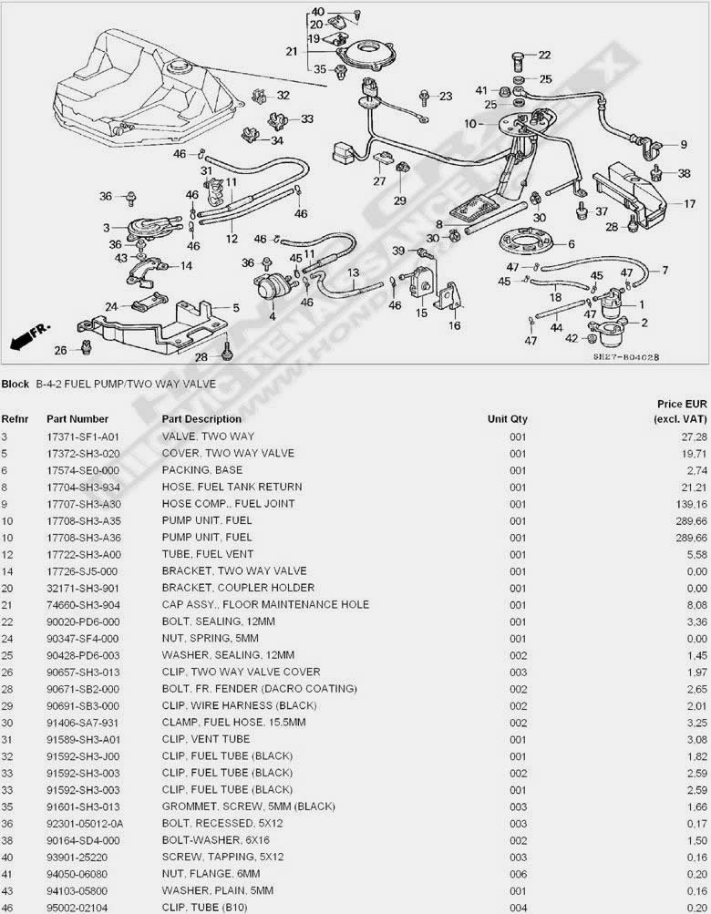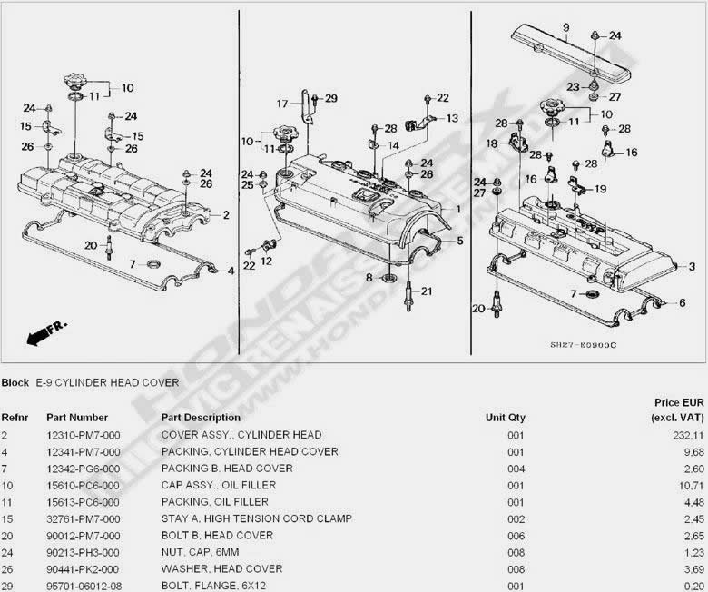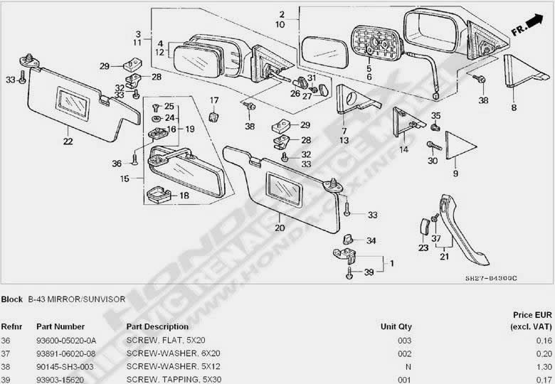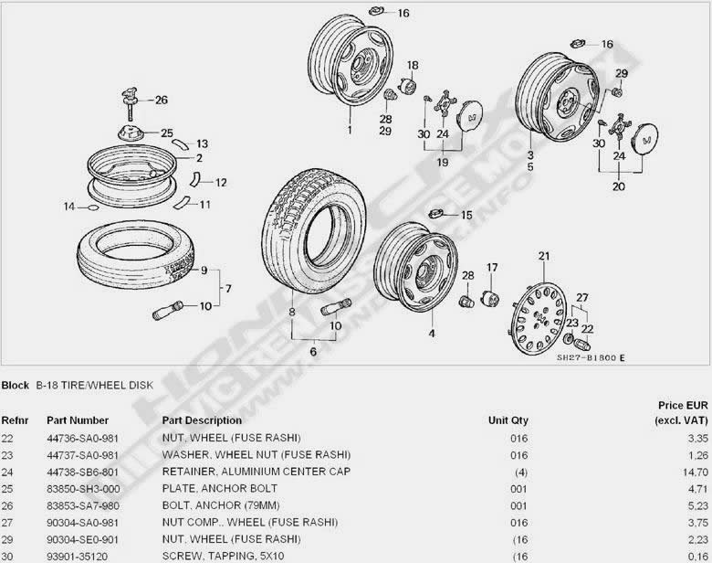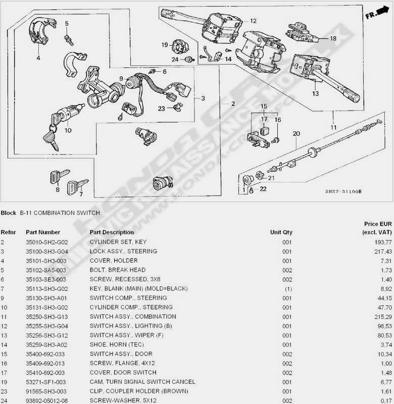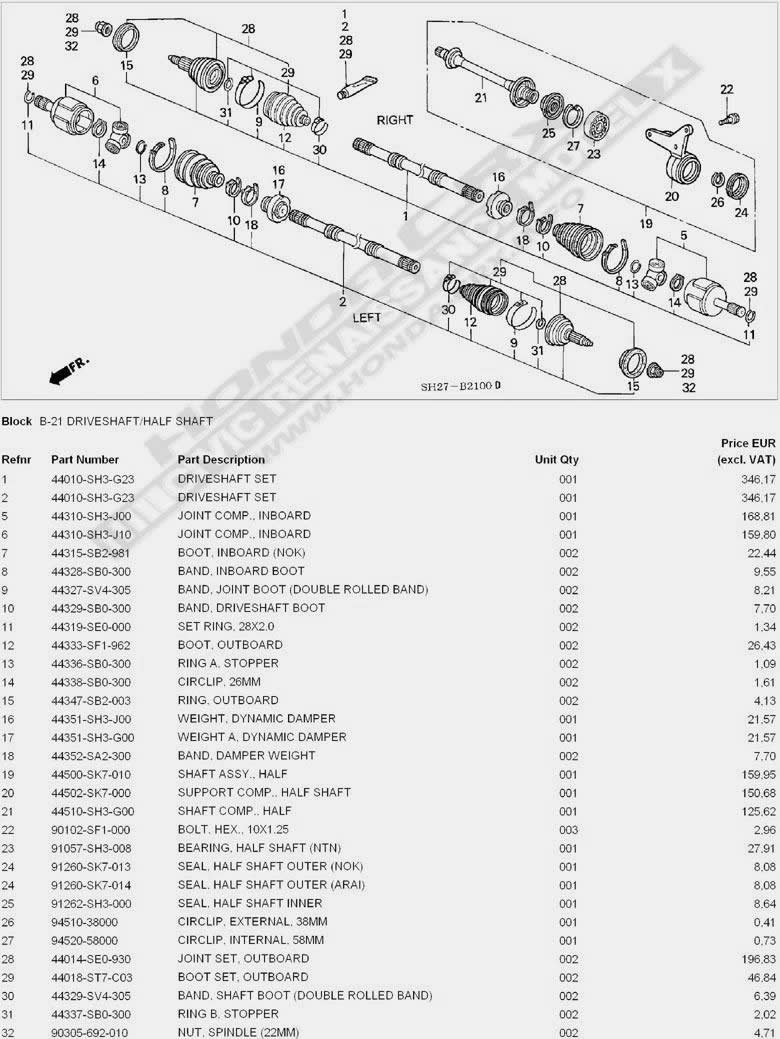 Ceny podane w schematach nie powinny się one specjalnie różnić w przyszłości od tych cen w serwisie Hondy - zwykle sa to wahania "o grosze". Ceny podane są w EURO bez podatku VAT (u nas jest to 22%, w niemczech 16%). Jeśli macie na obrazku nieco więcej części które Waszym zdaniem nie pasują do tego akurat modelu... to faktycznie może tak być :) Części które są potrzebne w danym modelu.. z danego schematu, sa wymienione niżej - razem z cenami. Często są schematy zbiorcze do wszystkich typów, tylko wybrane elementy z obrazka są właściwe.