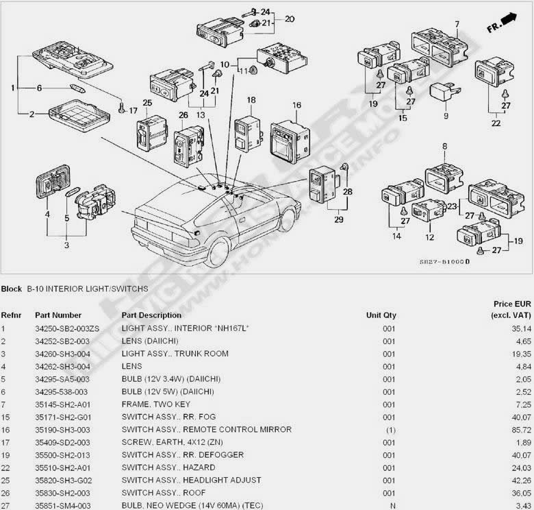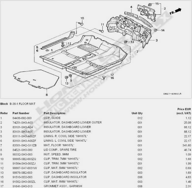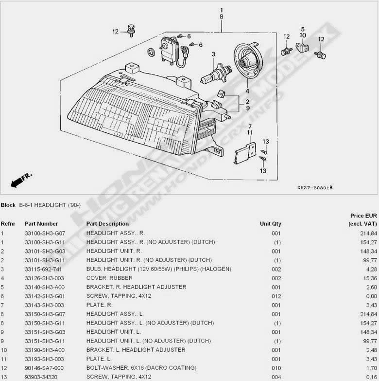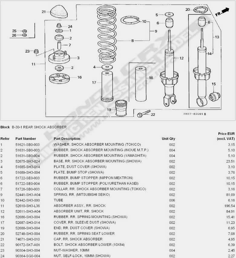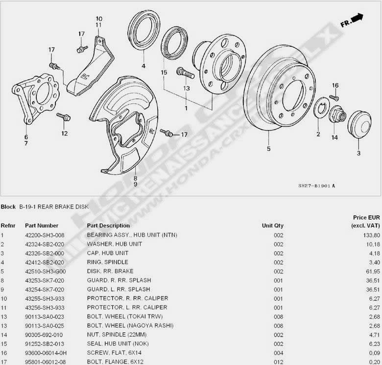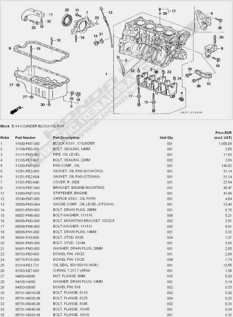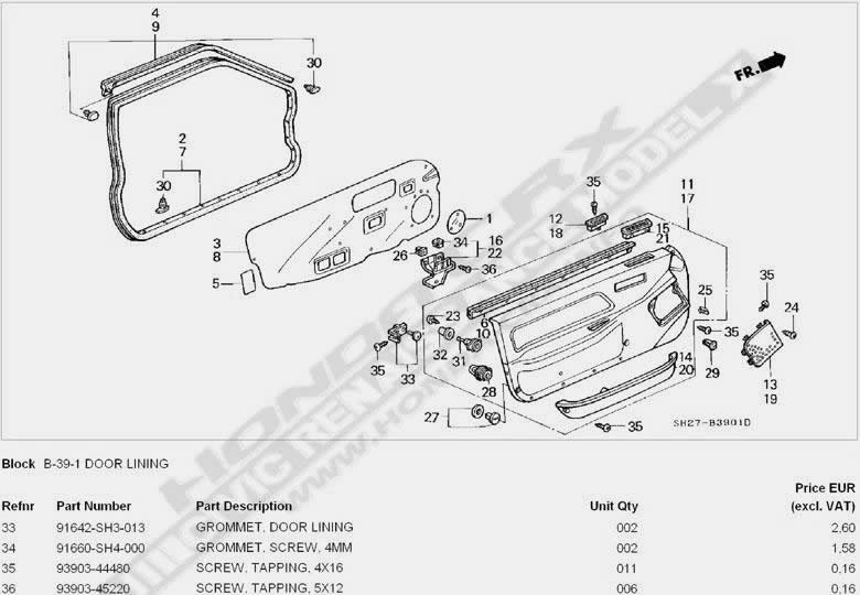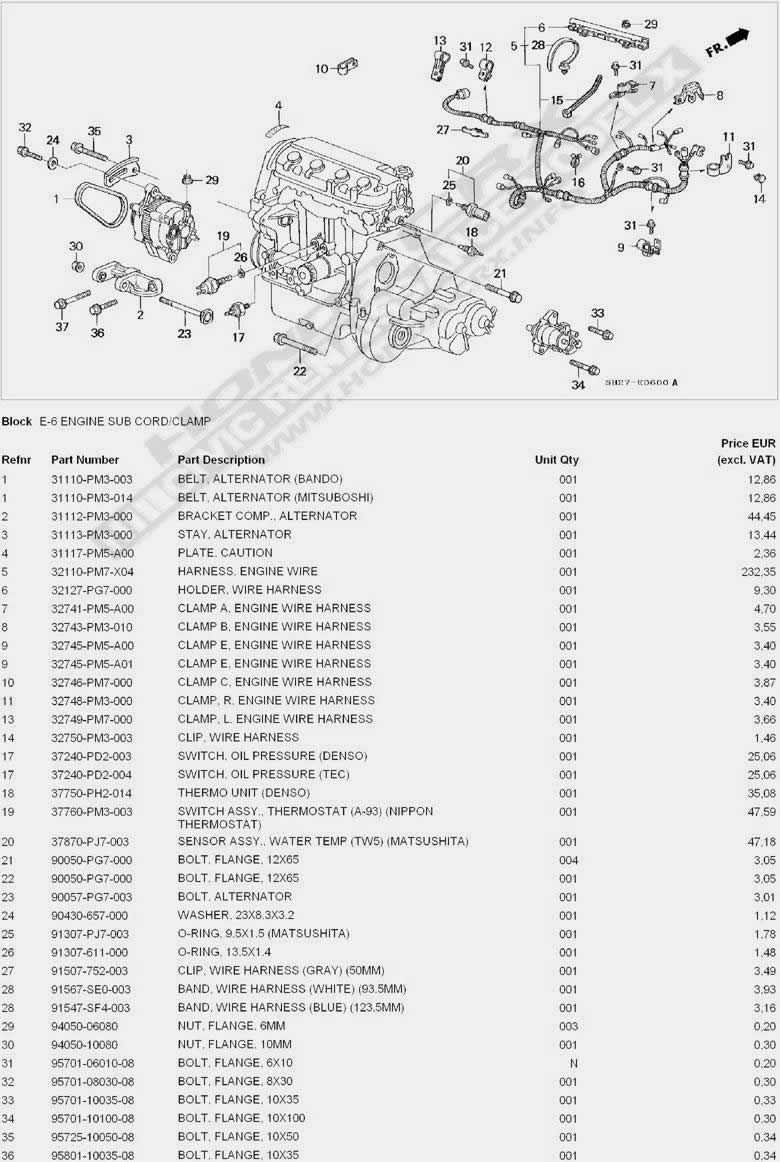 Ceny podane w schematach nie powinny się one specjalnie różnić w przyszłości od tych cen w serwisie Hondy - zwykle sa to wahania "o grosze". Ceny podane są w EURO bez podatku VAT (u nas jest to 22%, w niemczech 16%). Jeśli macie na obrazku nieco więcej części które Waszym zdaniem nie pasują do tego akurat modelu... to faktycznie może tak być :) Części które są potrzebne w danym modelu.. z danego schematu, sa wymienione niżej - razem z cenami. Często są schematy zbiorcze do wszystkich typów, tylko wybrane elementy z obrazka są właściwe.