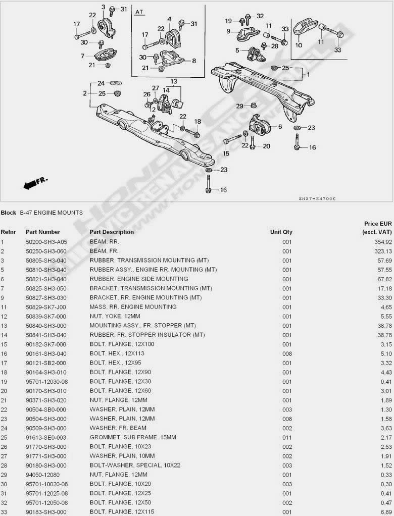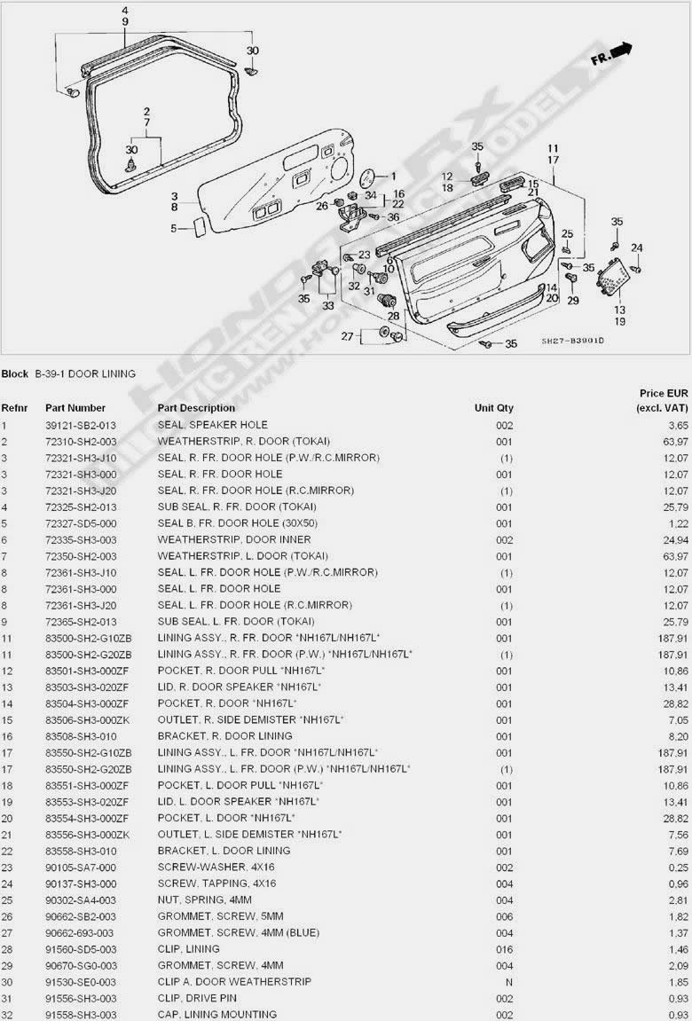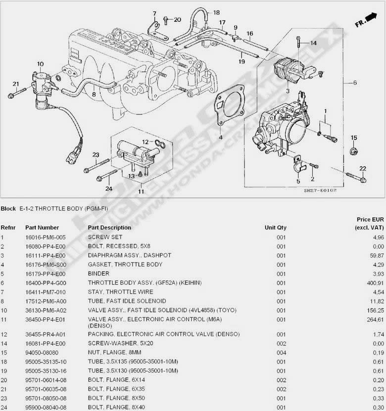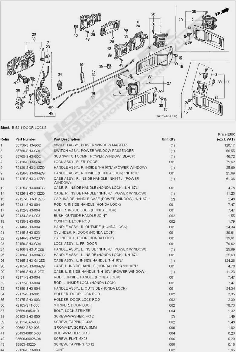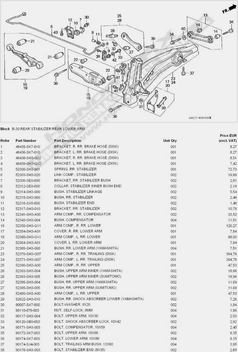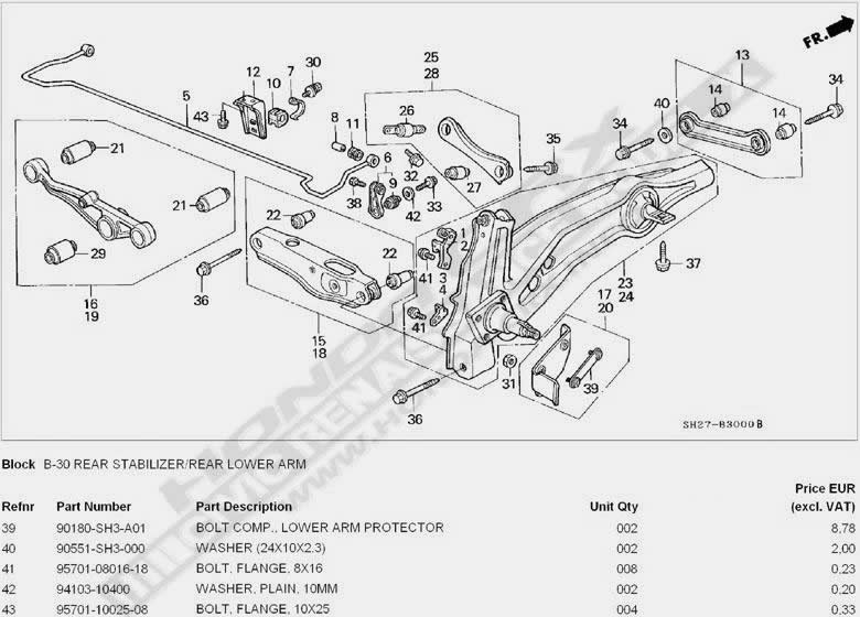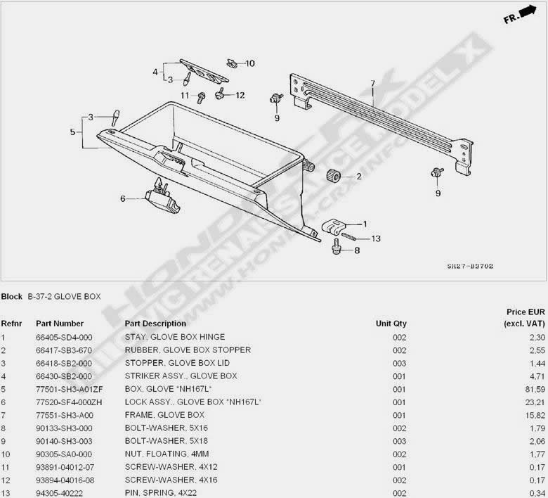 Ceny podane w schematach nie powinny się one specjalnie różnić w przyszłości od tych cen w serwisie Hondy - zwykle sa to wahania "o grosze". Ceny podane są w EURO bez podatku VAT (u nas jest to 22%, w niemczech 16%). Jeśli macie na obrazku nieco więcej części które Waszym zdaniem nie pasują do tego akurat modelu... to faktycznie może tak być :) Części które są potrzebne w danym modelu.. z danego schematu, sa wymienione niżej - razem z cenami. Często są schematy zbiorcze do wszystkich typów, tylko wybrane elementy z obrazka są właściwe.
