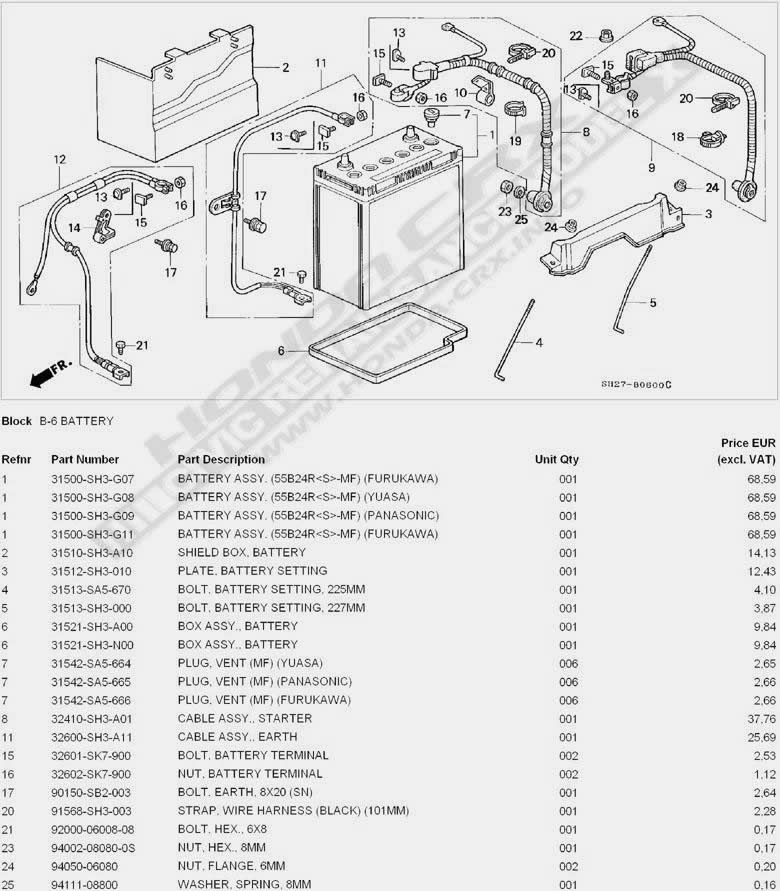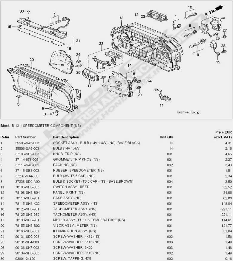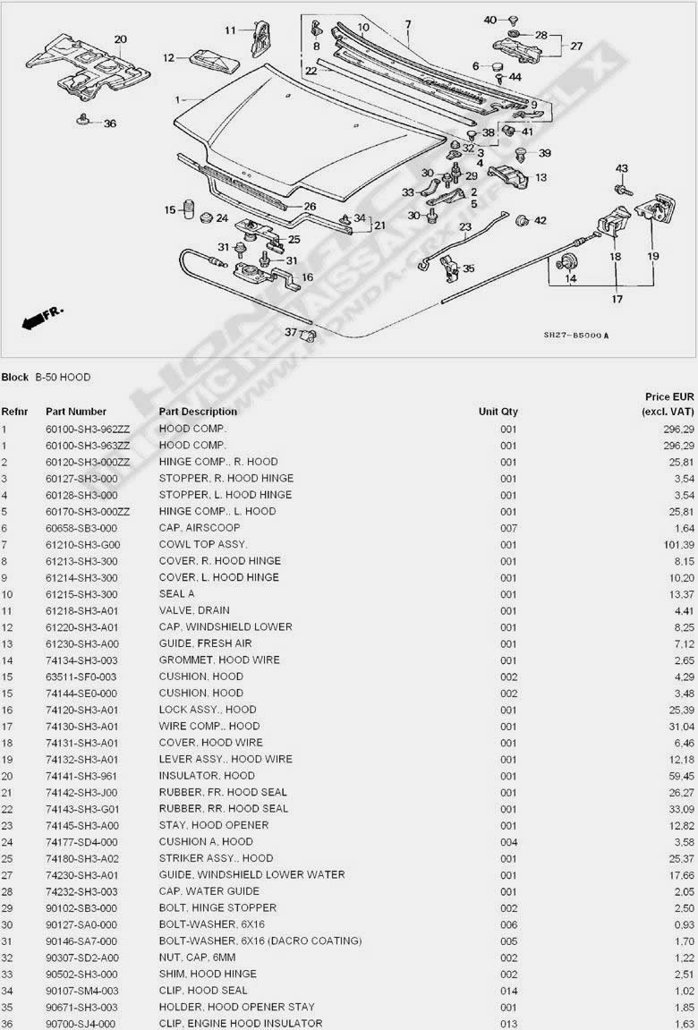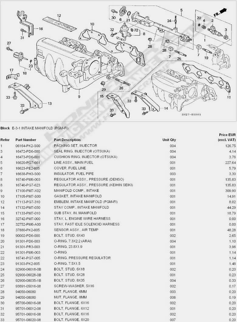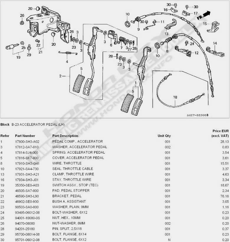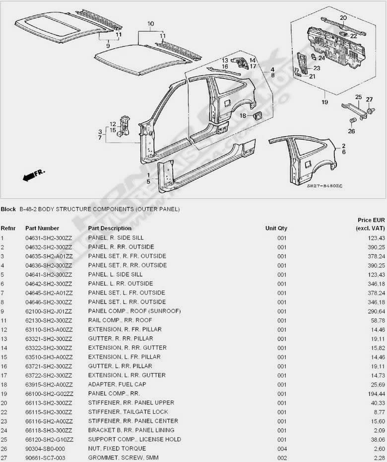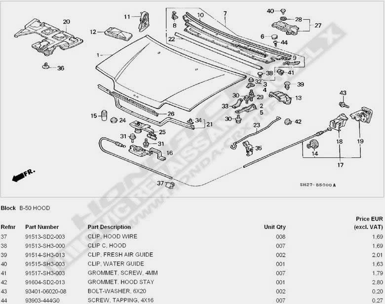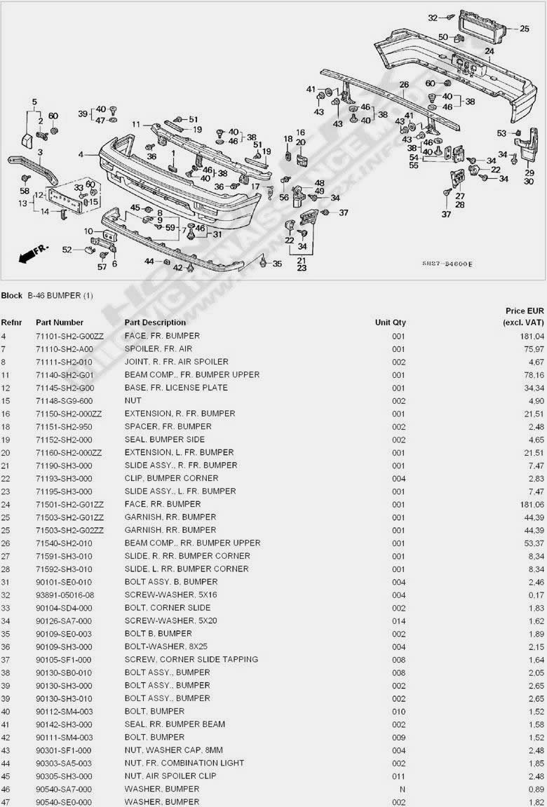 Ceny podane w schematach nie powinny się one specjalnie różnić w przyszłości od tych cen w serwisie Hondy - zwykle sa to wahania "o grosze". Ceny podane są w EURO bez podatku VAT (u nas jest to 22%, w niemczech 16%). Jeśli macie na obrazku nieco więcej części które Waszym zdaniem nie pasują do tego akurat modelu... to faktycznie może tak być :) Części które są potrzebne w danym modelu.. z danego schematu, sa wymienione niżej - razem z cenami. Często są schematy zbiorcze do wszystkich typów, tylko wybrane elementy z obrazka są właściwe.