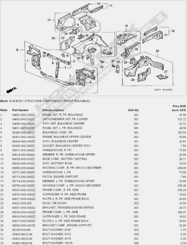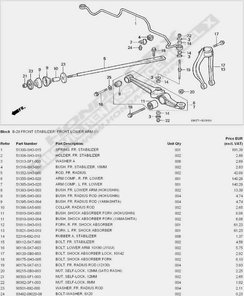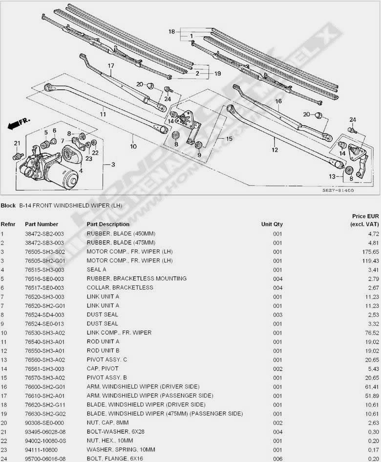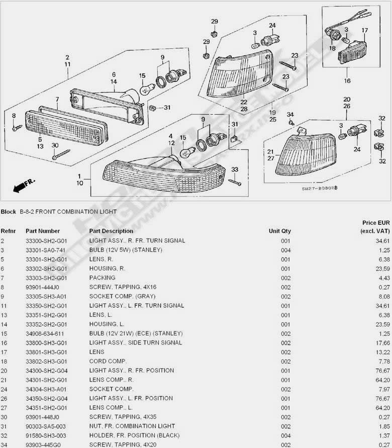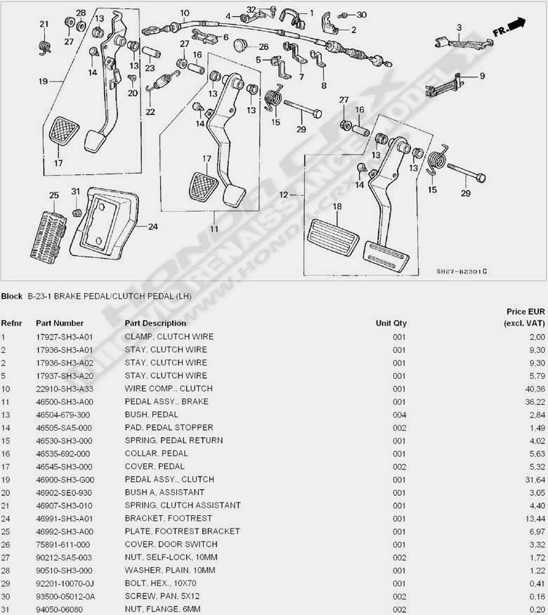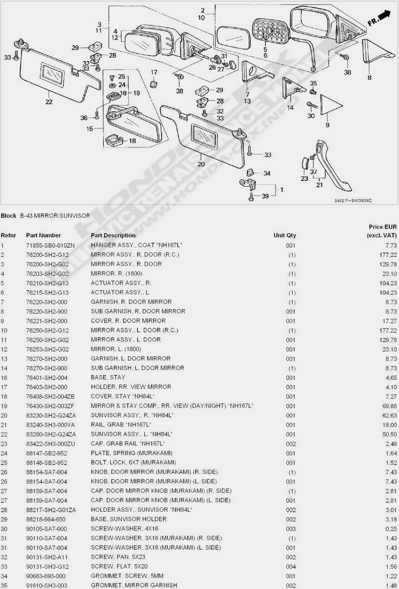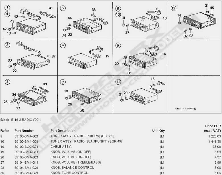 Ceny podane w schematach nie powinny się one specjalnie różnić w przyszłości od tych cen w serwisie Hondy - zwykle sa to wahania "o grosze". Ceny podane są w EURO bez podatku VAT (u nas jest to 22%, w niemczech 16%). Jeśli macie na obrazku nieco więcej części które Waszym zdaniem nie pasują do tego akurat modelu... to faktycznie może tak być :) Części które są potrzebne w danym modelu.. z danego schematu, sa wymienione niżej - razem z cenami. Często są schematy zbiorcze do wszystkich typów, tylko wybrane elementy z obrazka są właściwe.