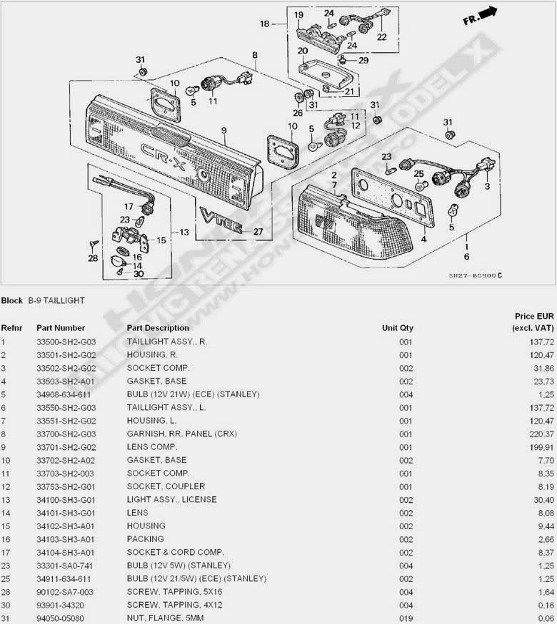 CRX 2nd gen - Schematy i ceny części dla modelu ED9 90-92