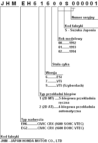 Numerologia dla Del Soli produkowanych na rynek europejski. Prawdopodobnie takie rzeczy jak rok produkcji itd., będa pasować też do CRX'ów z innych kontynentów.