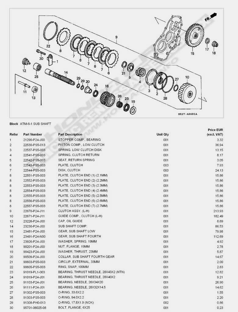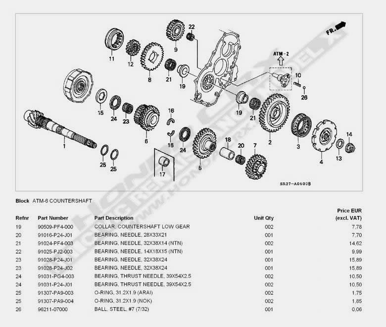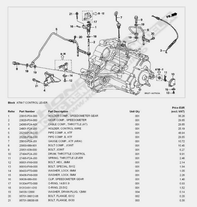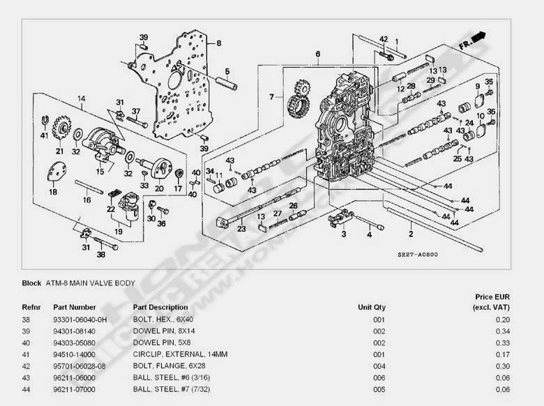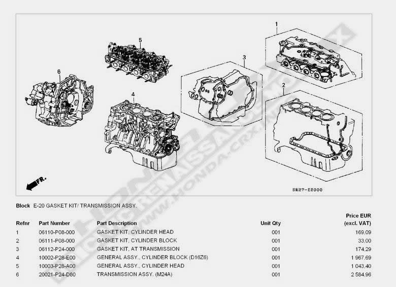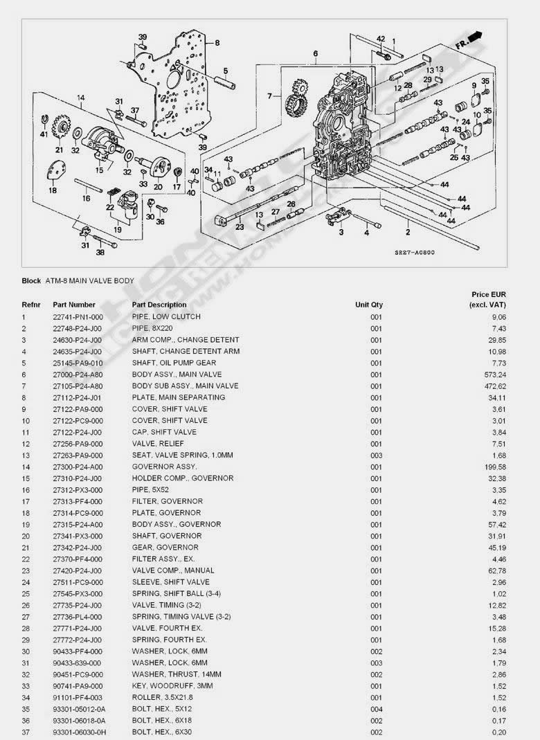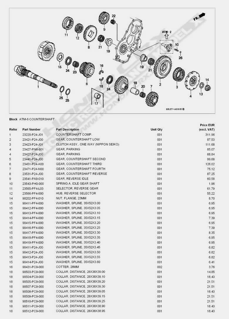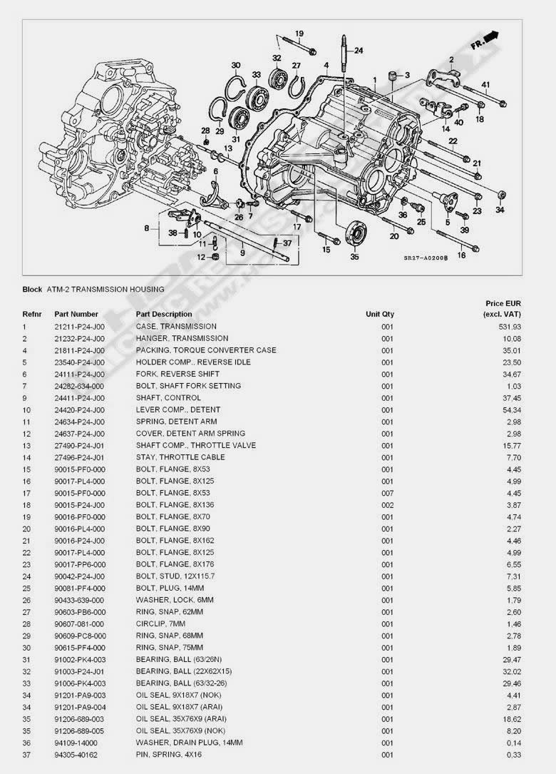 Ceny podane w schematach nie powinny się one specjalnie różnić w przyszłości od tych cen w serwisie Hondy - zwykle sa to wahania "o grosze". Ceny podane są w EURO bez podatku VAT (u nas jest to 22%, w niemczech 16%). Jeśli macie na obrazku nieco więcej części które Waszym zdaniem nie pasują do tego akurat modelu... to faktycznie może tak być :) Części które są potrzebne w danym modelu.. z danego schematu, sa wymienione niżej - razem z cenami. Często są schematy zbiorcze do wszystkich typów, tylko wybrane elementy z obrazka są właściwe.