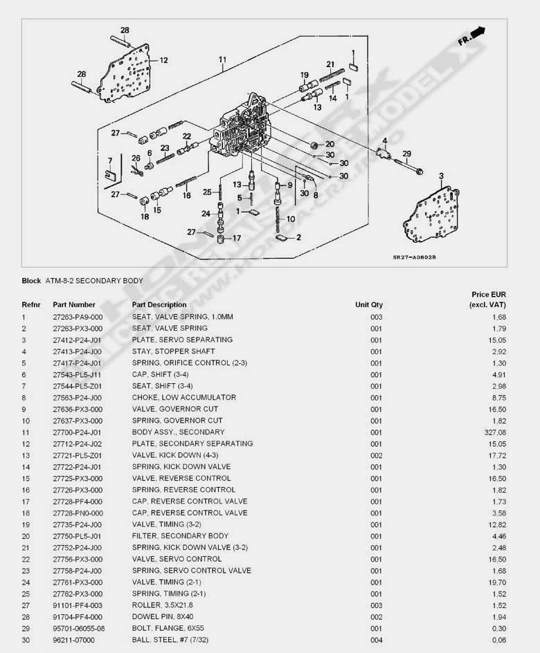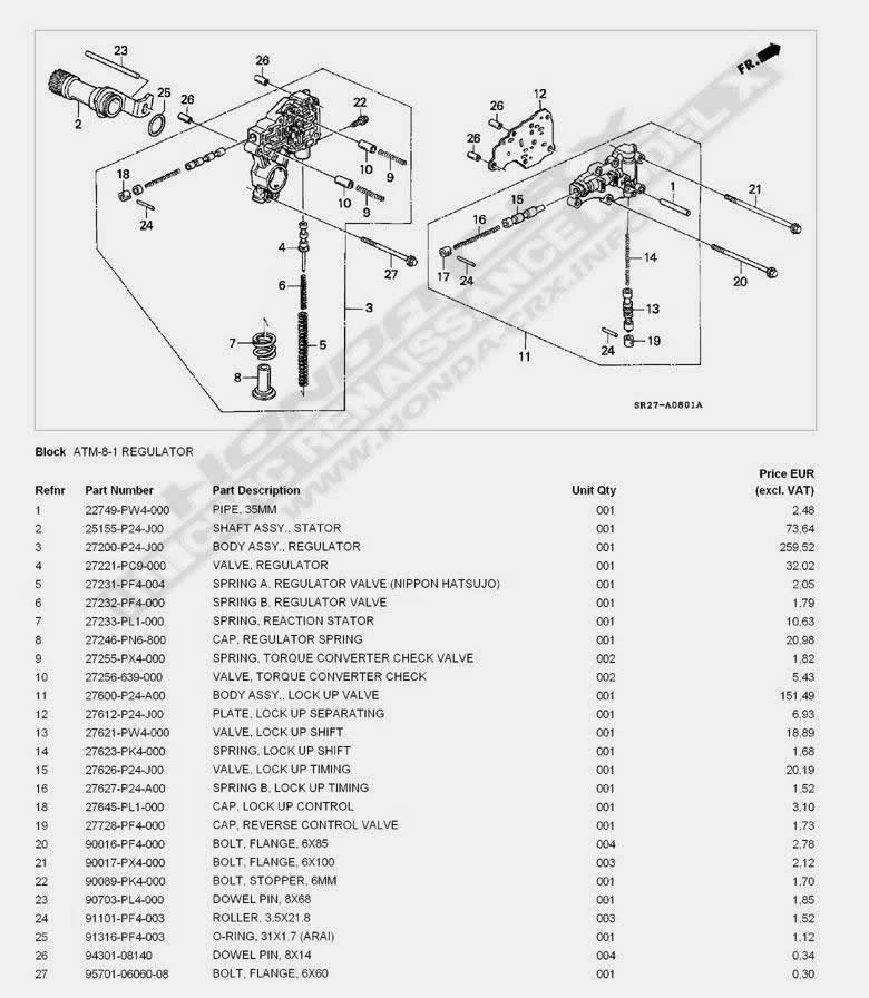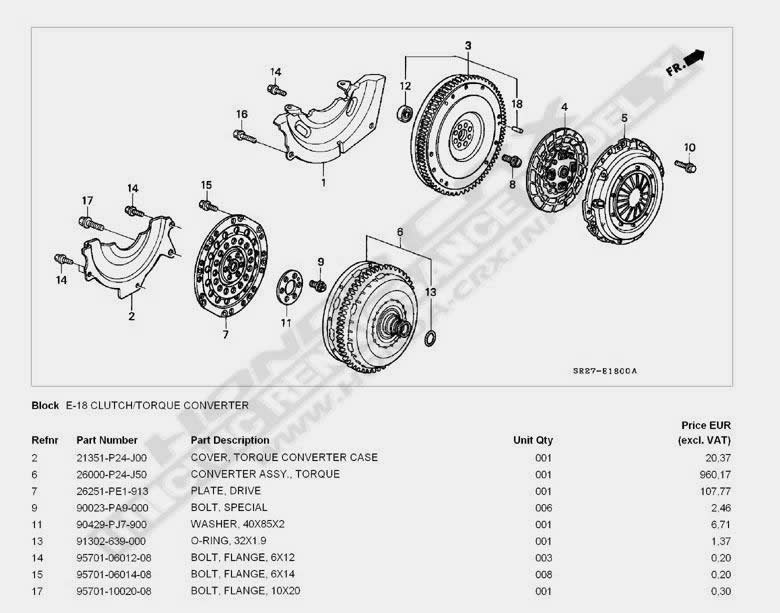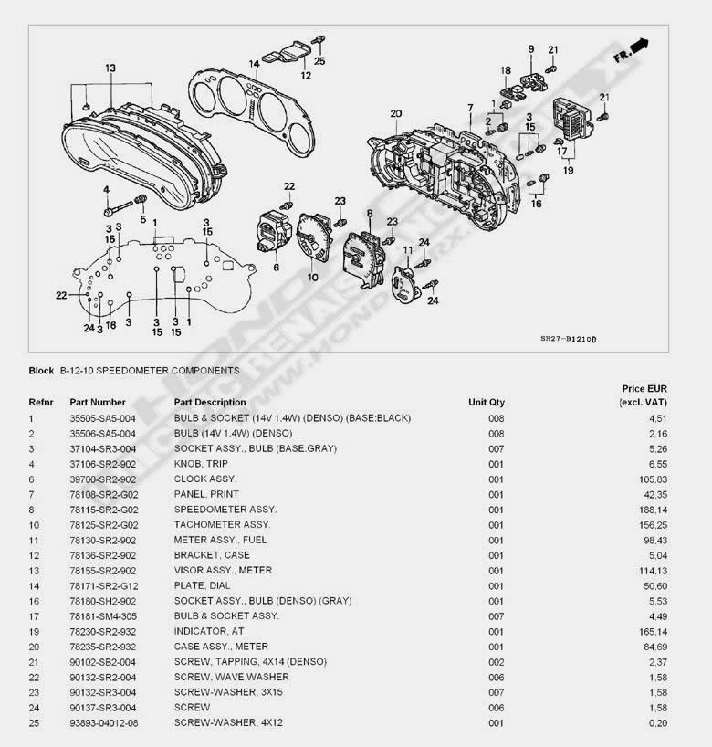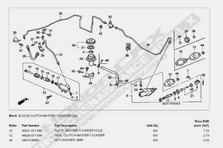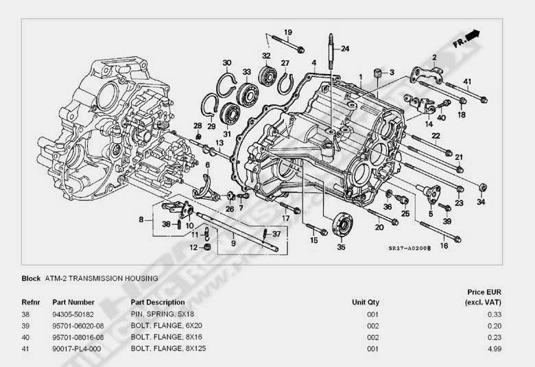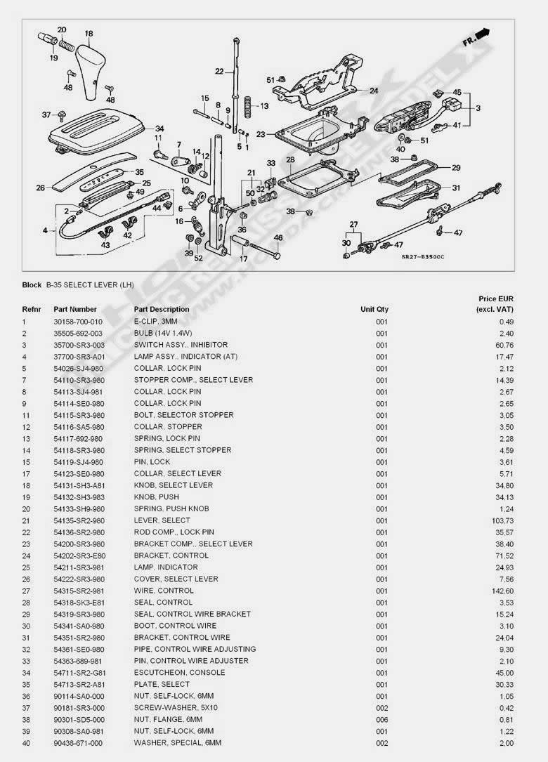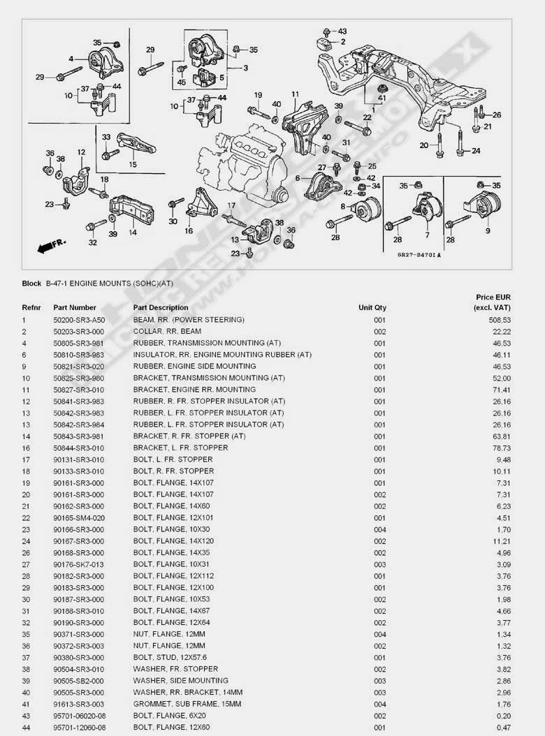 Ceny podane w schematach nie powinny się one specjalnie różnić w przyszłości od tych cen w serwisie Hondy - zwykle sa to wahania "o grosze". Ceny podane są w EURO bez podatku VAT (u nas jest to 22%, w niemczech 16%). Jeśli macie na obrazku nieco więcej części które Waszym zdaniem nie pasują do tego akurat modelu... to faktycznie może tak być :) Części które są potrzebne w danym modelu.. z danego schematu, sa wymienione niżej - razem z cenami. Często są schematy zbiorcze do wszystkich typów, tylko wybrane elementy z obrazka są właściwe.